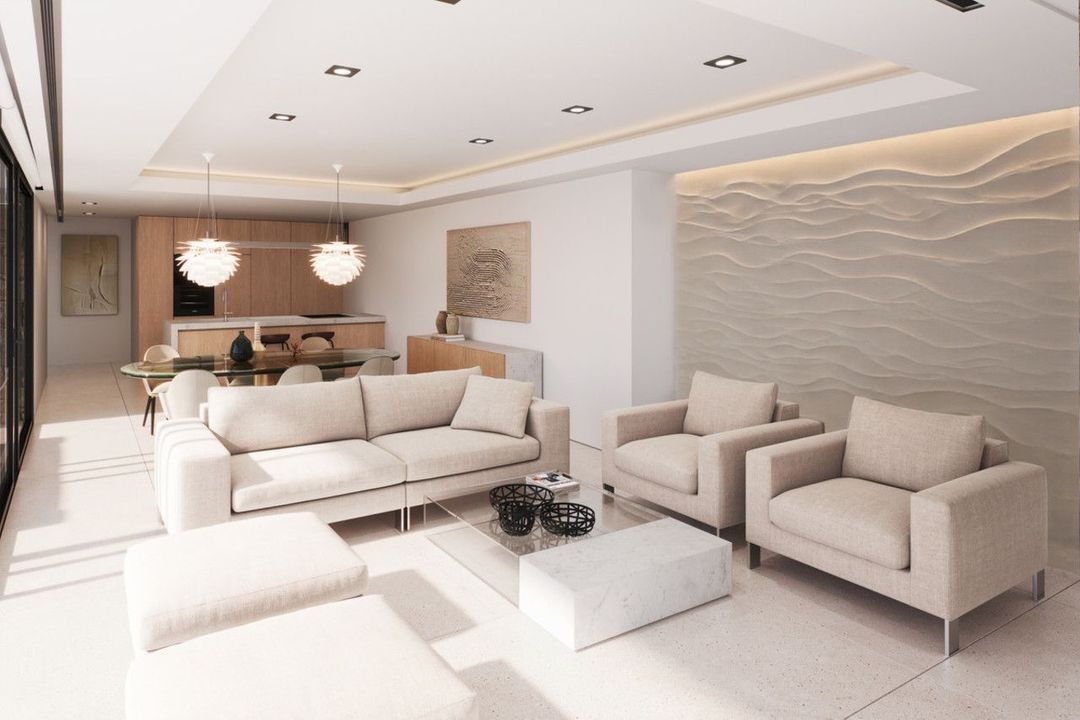 De woning opent volledig naar het terras, waardoor de natuurlijke lichtinval wordt gemaximaliseerd. Het indrukwekkende uitzicht kan volledig worden bewonderd door de panoramische ramen.