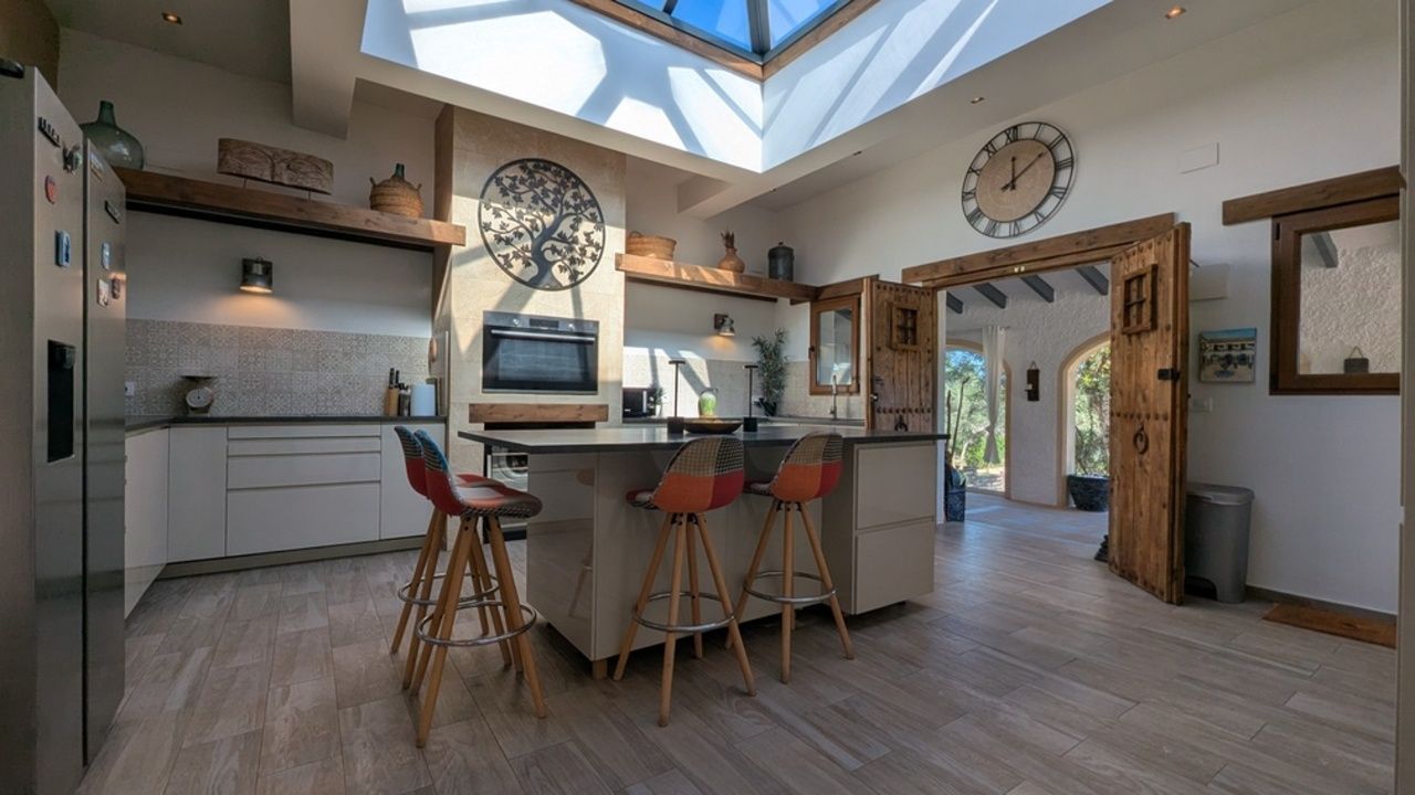 This versatile property for sale in Jávea sits on a flat 4,600 m² south-facing plot with countryside and Montgó views, offering two independent villas each with a private pool, including a fully renovated main house and a licensed two-bedroom guest house generating strong rental income, plus a fully equipped wooden cabin. Presenting a rare opportunity to acquire a unique property for sale in Javea, situated on a sprawling flat plot in the prestigious and peaceful Lluca area. This exceptional finca-style complex offers two completely independent, single-level houses, each with its own private swimming pool and garden. Located in the heart of the Costa Blanca, this real estate in Javea is perfect for multi-generational living or as a high-yield investment opportunity. If you are searching for homes for sale in Javea with income potential, this property currently operates with a full Tourist Licence, making it ideal for those looking to generate rental income while enjoying the authentic Mediterranean lifestyle. The double plot of nearly 4,600 m² ensures total privacy, breathtaking countryside and Montgo views, and ample space for expansion—including the possibility of building a tennis or paddle court (subject to planning). Prime Location in Javea, Costa Blanca Convenience meets tranquility here. Located just a 10-minute drive from Javea’s Arenal Beach, the port, and the historic Old Town, and only 20 minutes from Moraira, this villa for sale in Javea places you close to fantastic dining and amenities. It is also ideally situated near award-winning international schools such as Lady Elizabeth School and Xabia International College, making it a top choice for families seeking properties for sale in Javea Costa Blanca for permanent residence. The Main Villa: Traditional Finca Charm The main residence has been beautifully refurbished to a high standard while retaining its full Mediterranean character. Enter via a full-length, partially glazed naya (traditional porch) into a bright, fully fitted kitchen featuring a unique glass dome that floods the space with light. The open-plan living-dining room boasts a fireplace and direct patio access to the garden. This level comprises two generous bedrooms, each with its own en-suite bathroom. Step outside to discover a sympathetically landscaped garden featuring a large heated swimming pool, expansive terraces, a built-in BBQ area, a wonderful summer kitchen/bar, pergolas, and a cozy fire pit zone. Additional features include a garage, ample storage, and off-road parking for several vehicles. The Second Villa: Independent Income Opportunity The second independent house is a standout feature among luxury properties for sale in Javea. Currently operating successfully as a holiday rental, it offers complete privacy with its own pool, garden, and terraces. This self-contained home includes a living room with kitchen, two bedrooms (one with patio doors to the pool) , and two bathrooms—perfect as a guest house or "granny annex." Additional Accommodation andamp; Facilities For even more space, a charming one-bedroom wooden chalet provides a kitchenette, shower room, and living area. This adds to the versatility of this already impressive estate for sale in Javea. Key facilities include: - Double glazing throughout - Solar panels - Air conditioning, underfloor heating and a wood-burning stove - Security alarm and electric gates - High-speed internet - Ample parking and garage space Whether you are looking for a permanent family home with guest accommodation or a portfolio of properties for sale in Javea with proven rental history, this dual-villa complex delivers on every level. Experience the tranquility, space, and positive ambiance of this stunning Javea country property—book your viewing today.