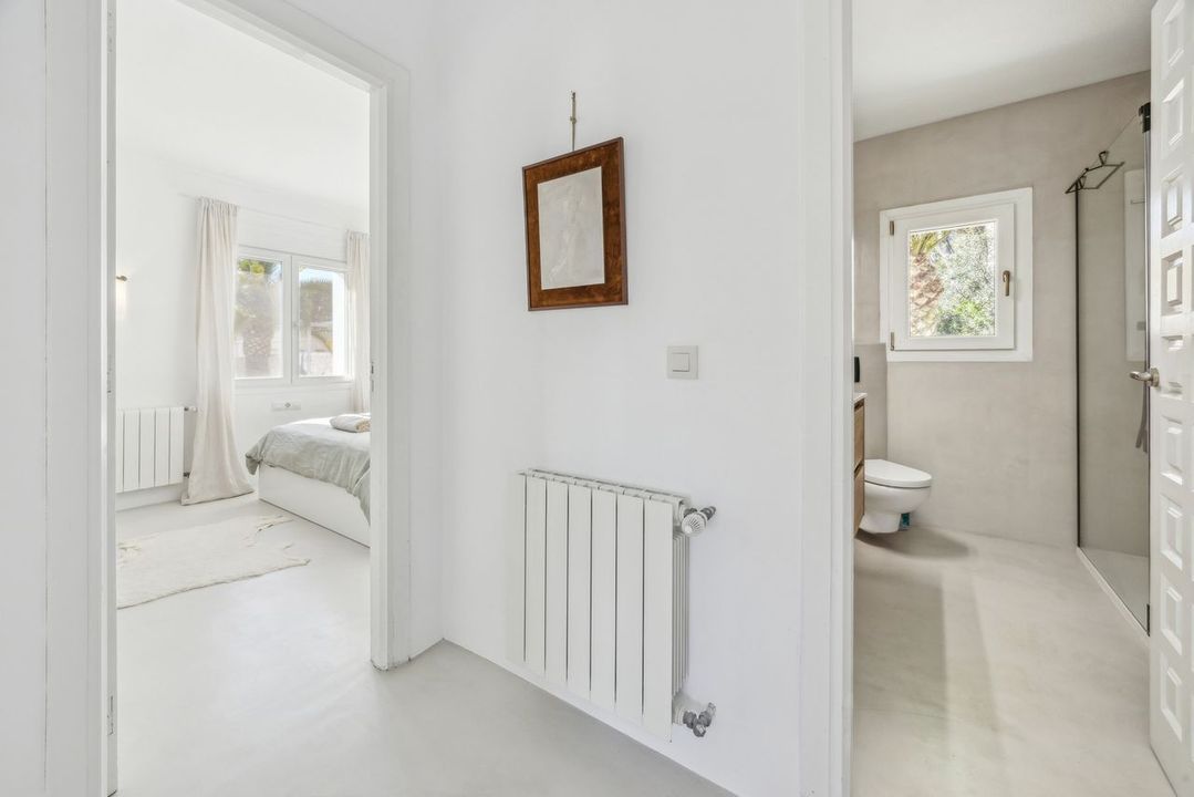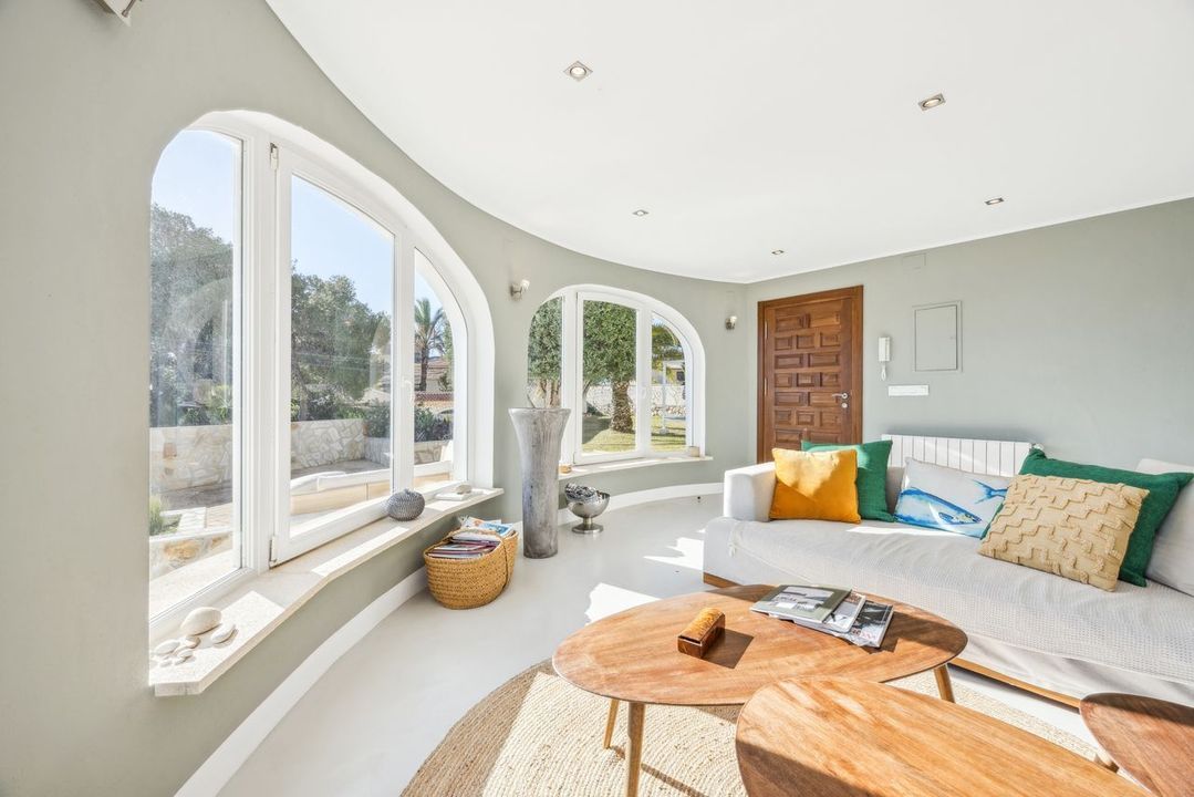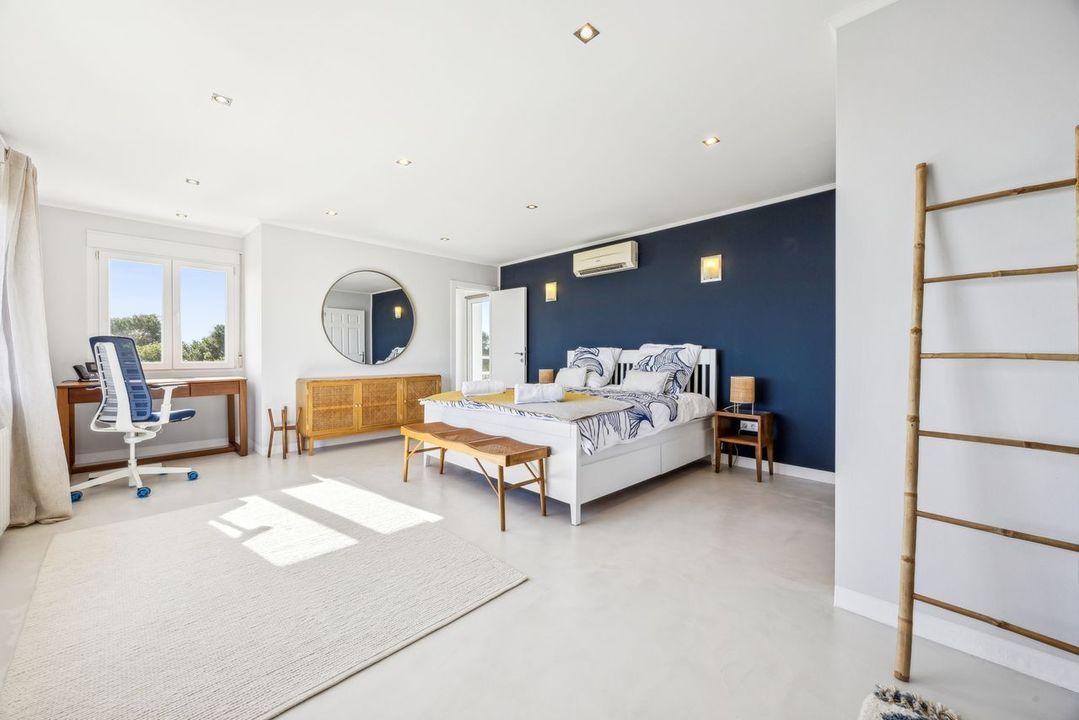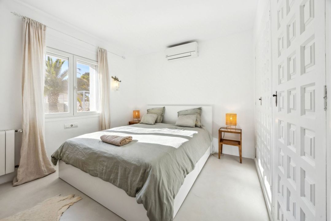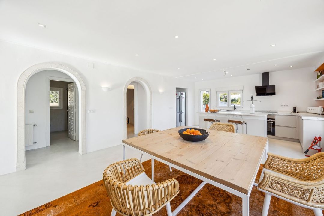 De woonruimte is verdeeld over de begane grond en twee andere, lichtovergoten verdiepingen. De villa biedt een woonkamer, een woon-slaapkamer, een ruime eetkamer met open keuken, drie slaapkamers, drie doucheruimtes en een wasruimte/bergruimte. De buitenruimte is onderhoudsvriendelijk aangelegd en biedt vanaf bijna elk punt een droomachtig zeezicht. Het ruime hoofddakterras nodigt uit voor diner met vrienden op zwoele zomeravonden. Een nieuw aangelegde verwarmbare zwembad, ingebed in een andere groot opgezette privéterras, biedt eveneens uitzicht op de zee. Ook op de eerste verdieping vinden we een groot terras, deels voorzien van een pergola, met adembenemend panoramisch zeezicht. Vanuit de hoofdslaapkamer met en-suite badkamer kijkt men recht op de zee en kan men genieten van de mooiste zonsopgangen, met Ibiza aan de horizon. Aangrenzend bevindt zich een ander terras met zeezicht en een trap naar het solarium. De tuin van de villa draagt bij aan de schoonheid en creëert een rustige en privé sfeer.