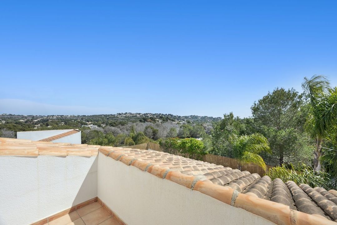 Buiten begint het echte genieten: een eigen zwembad, een fraai aangelegde tuin vol mediterrane planten, en de zuidelijke ligging die zorgt voor zon van 's ochtends tot 's avonds. Op het royale perceel van ca. 500m² geniet u van privacy, ruimte en uitzicht over het groen richting de heuvels van Costa Nova en Granadella.
