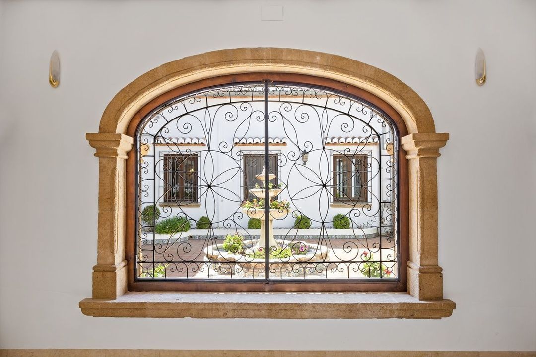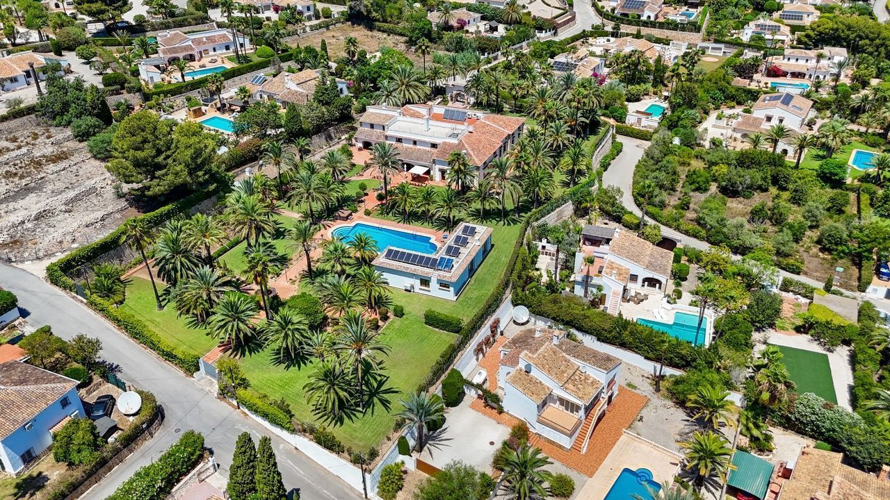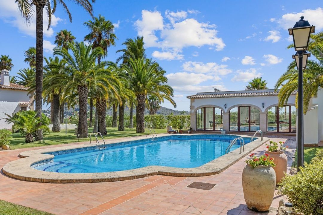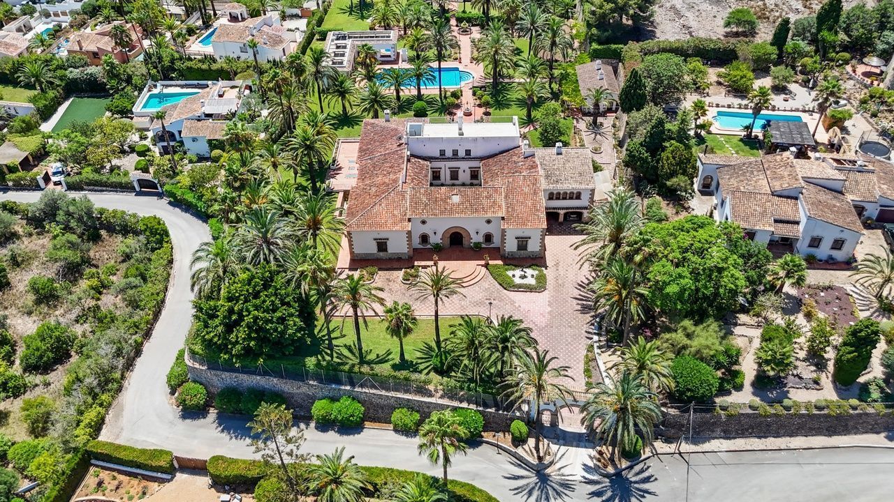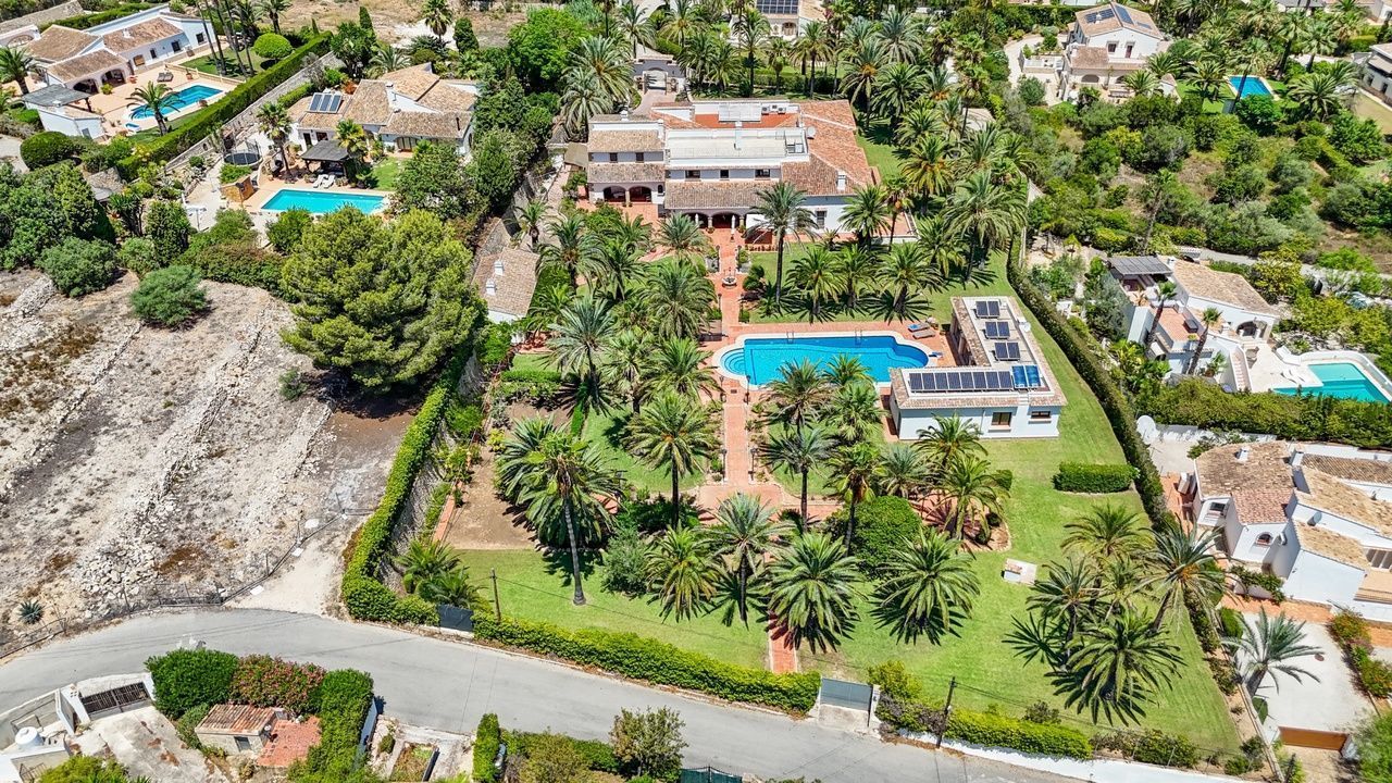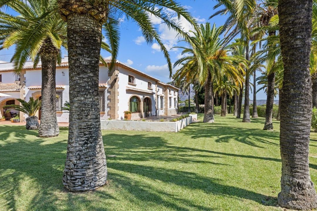 Buiten zijn de uitgestrekte aangelegde tuinen voorzien van meer dan 80 palmbomen, een privézwembad van 16 x 7 meter en meerdere terrassen die zijn ontworpen om het hele jaar door te genieten van het uitzonderlijke microklimaat van Jávea. Een eigen put ondersteunt de irrigatie over het hele landgoed, een praktisch tintje voor zo'n uitgestrekt terrein.