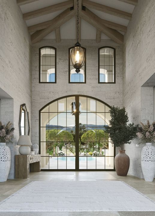 Grote aluminium raampartijen laten overvloedig natuurlijk licht binnen en creëren een voortdurende verbinding tussen binnen en buiten. Bij binnenkomst verwelkomt een foyer met marmeren wanden u met de grandeur van een luxe residentie. De hoofdwoonkamer, met schuine plafonds en extra hoogte, ademt licht, elegantie en een bijzondere ruimtelijkheid die vanaf het eerste moment indruk maakt.