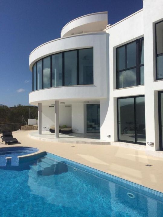 De villa heeft een bebouwd oppervlak van ongeveer 338 m² en biedt vier ruime slaapkamers en drie badkamers, waardoor het ideaal is als familiewoning of als verfijnde tweede woning. De belangrijkste woonruimtes zijn licht en uitnodigend, met grote ramen die het mediterrane landschap omlijsten en direct aansluiten op de buitenterrassen. Een volledig uitgeruste moderne keuken vult de open en sociale indeling van het huis aan.