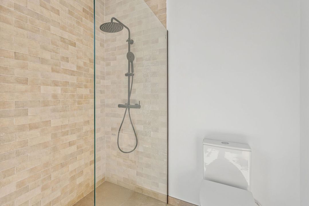 De bovenverdieping omvat een slaapkamer met en-suite badkamer en een eigen balkon, evenals een grote master suite met een kleedkamer, een luxe en-suite badkamer en een ruim terras met een adembenemend uitzicht op de Montgó.
