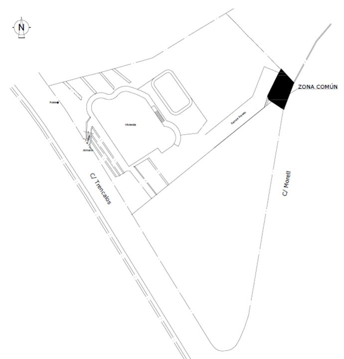 Huis met een kavel van 2.500 m², zonder interne renovatie, zonder nieuw zwembad en zonder omheining, aangezien er al een zwembad op het aangrenzende perceel is.