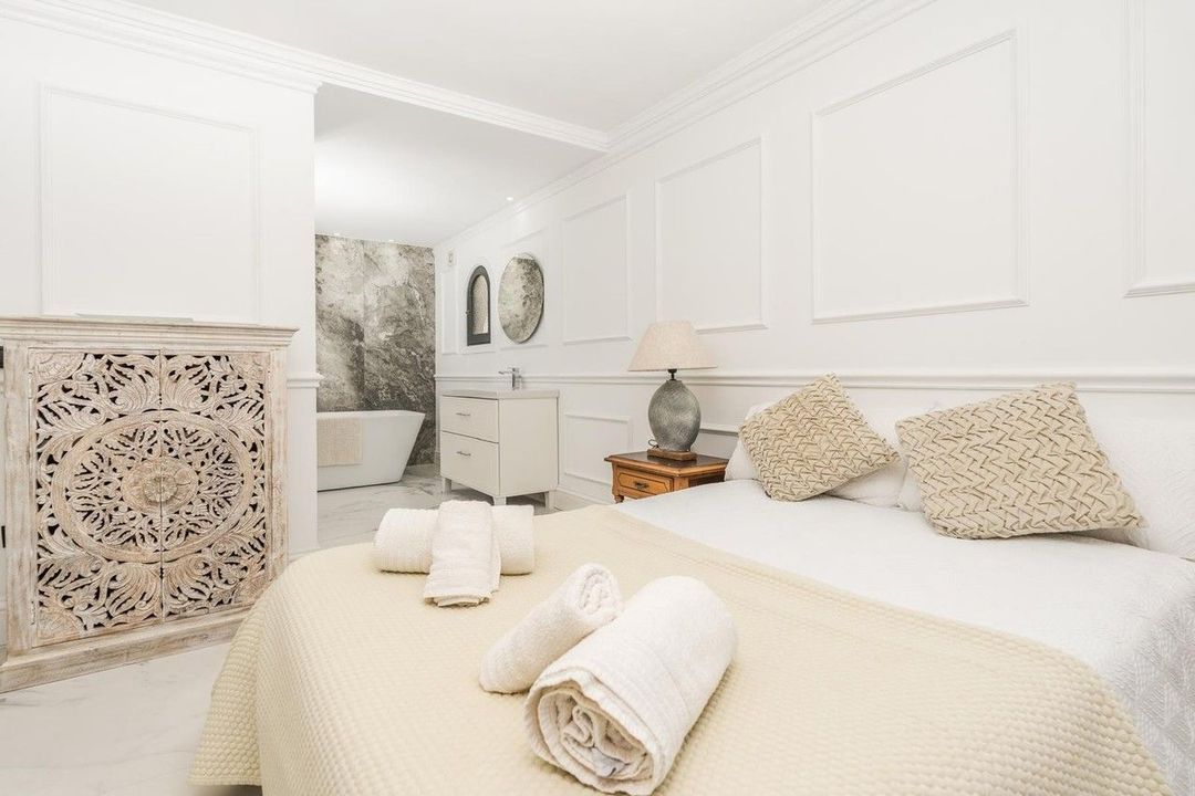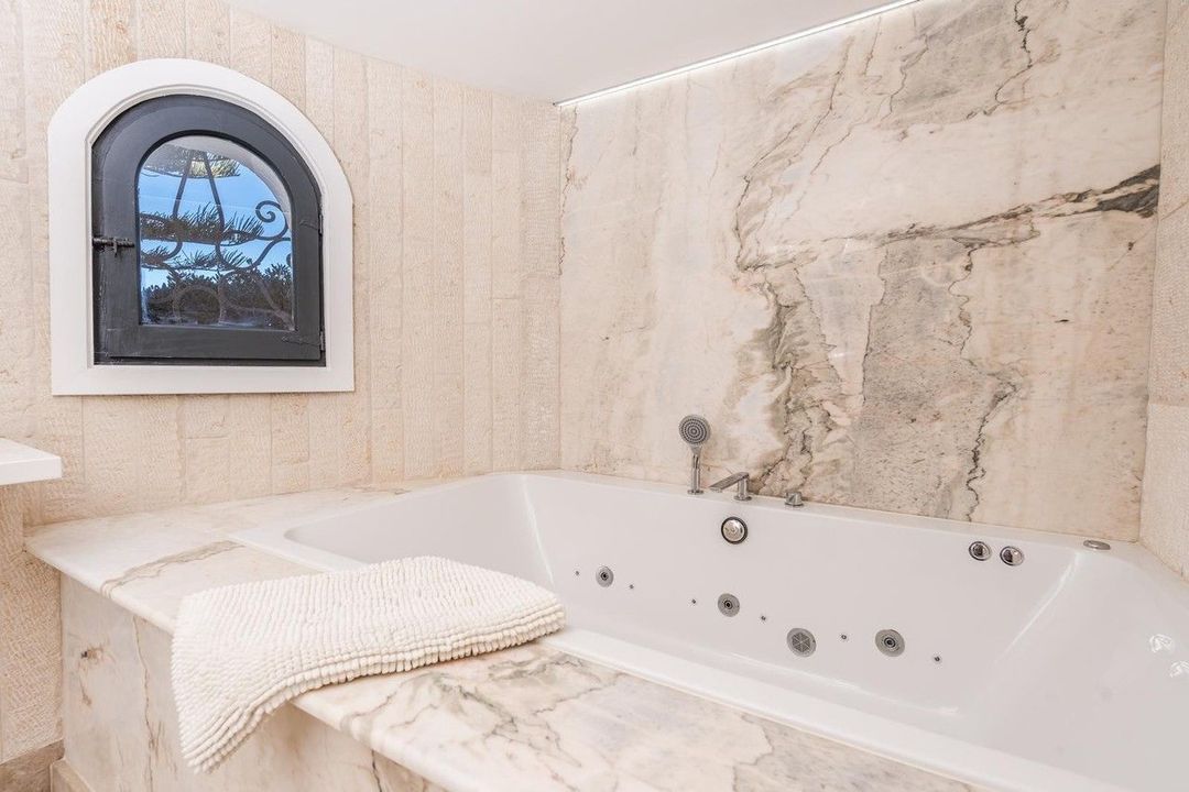 De bovenste verdieping herbergt een elegante hoofdsuite met uitzicht op de zee, ontworpen als een privé toevluchtsoord. Het beschikt over een open badkamer, een ligbad, een inloopdouche en een omgeving die is ontworpen voor ontspanning en ontkoppeling.
