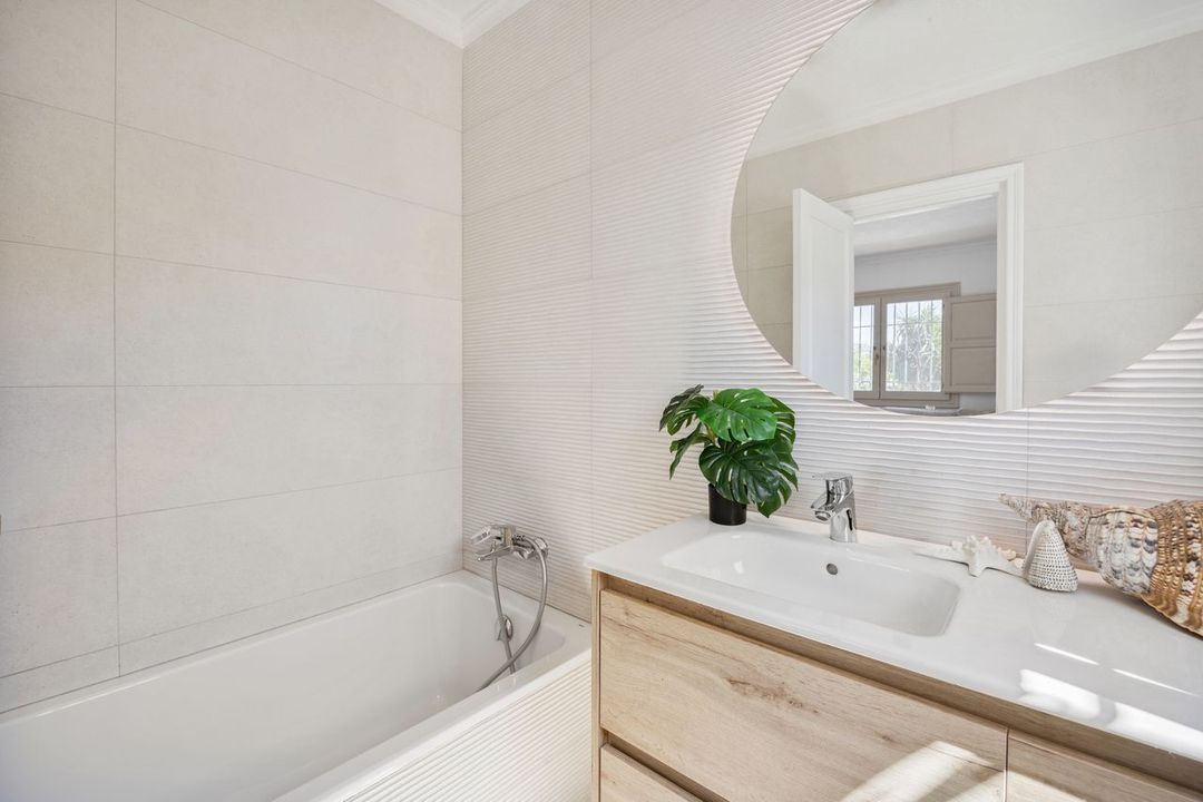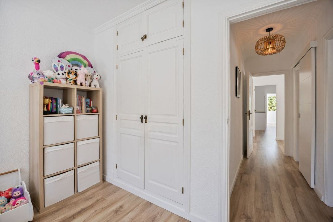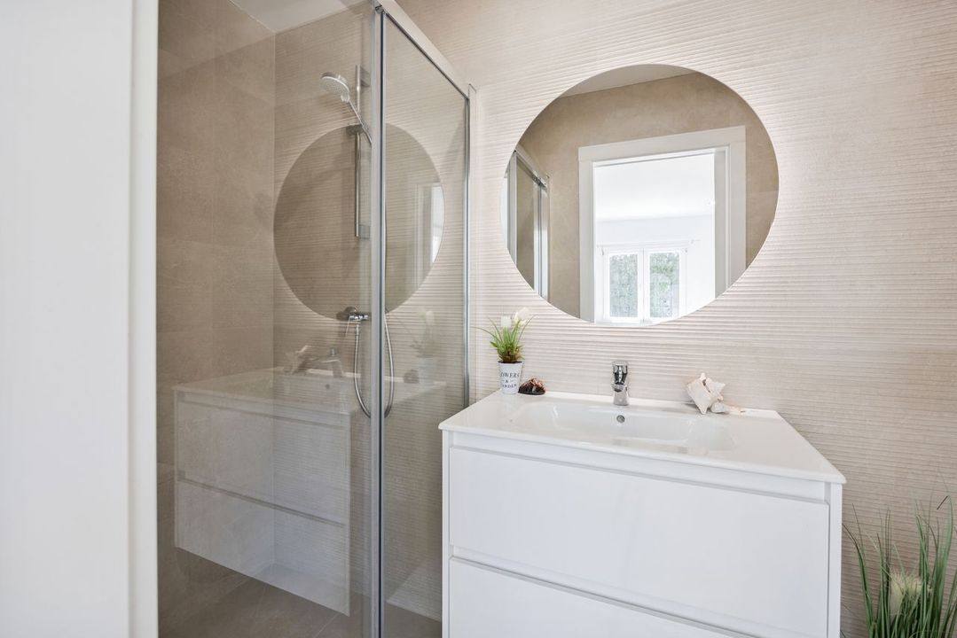 Binnen biedt de villa een frisse, eigentijdse uitstraling met een warme en gastvrije sfeer. Natuurlijk licht stroomt door de hoofdwoonruimtes, waar de lounge en eetkamer moeiteloos verbonden zijn met de buitenterrassen, wat zorgt voor een gemakkelijke binnen-buiten levensstijl.