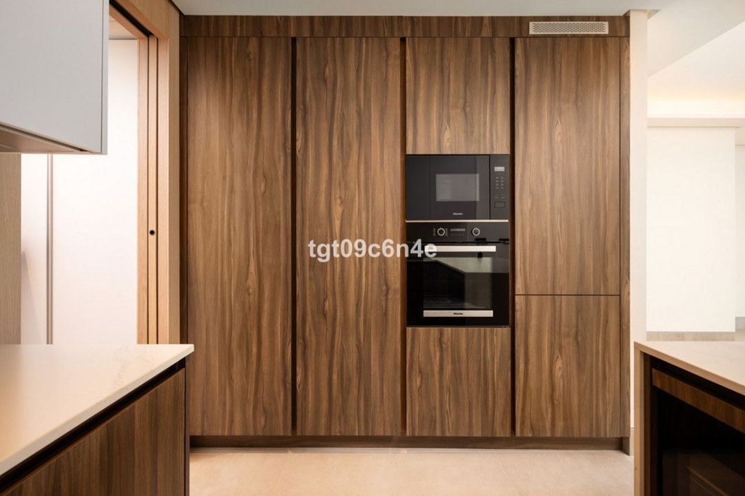 The elegant and functional open-plan kitchen is designed for enjoying gastronomy in complete connection with the other living spaces of the home. Its high-end appliances include an array of Miele appliances (oven, ceramic hob, microwave, dishwasher, washer and dryer), a Liebherr integrated refrigerator, Frecan extractor hood and a wine coller.