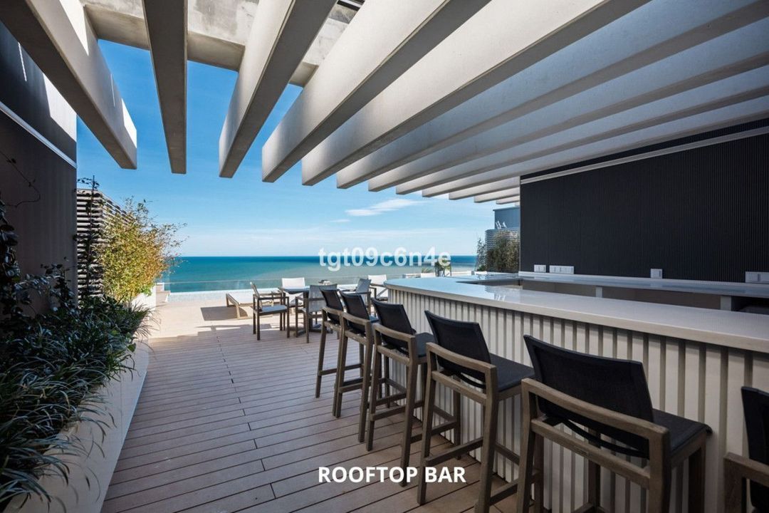 South-east oriented, located on the 14th floor, it boasts spectacular sea views, not only from its spacious covered terrace but also from the living areas, the living-dining room, the kitchen, and the master bedroom. The terrace offers unobstructed 180º views of the endless sea, the beach, the Antonio Banderas promenade and the city of Malaga.