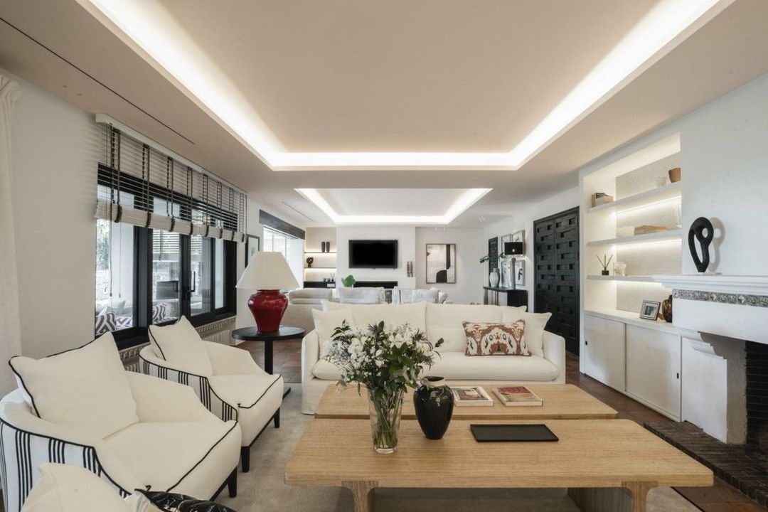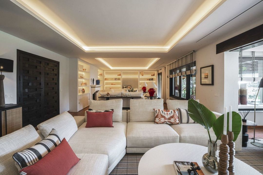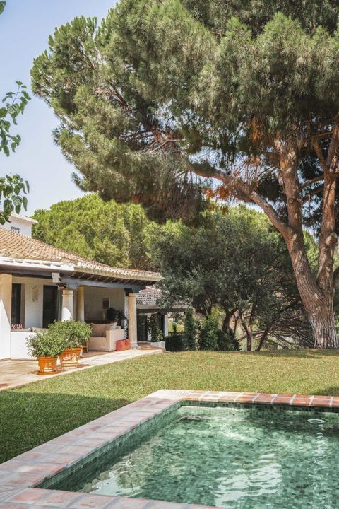 At every turn you will feel that the renovation and bringing to its present state has been carried out under the sensitive hand of the interior design studio in collaboration with a local architect. Everything has been taken care of to the last detail. Despite the considerable size of both the plot and the villa, you will find a number of cosy corners inviting you to relax and allowing you to spend time in the company of either family or friends and guests. The property consists of a main living area accessed through a typical Andalusian patio, where you will find a spacious living area divided into 2 zones with fireplaces, as well as a working corner loosely connected to the outdoor veranda with a beautiful view of the garden. Still on the ground floor there is a fully equipped kitchen in top design, a beautiful dining room from which you can again access one of the terraces inviting you to sit with friends or family.