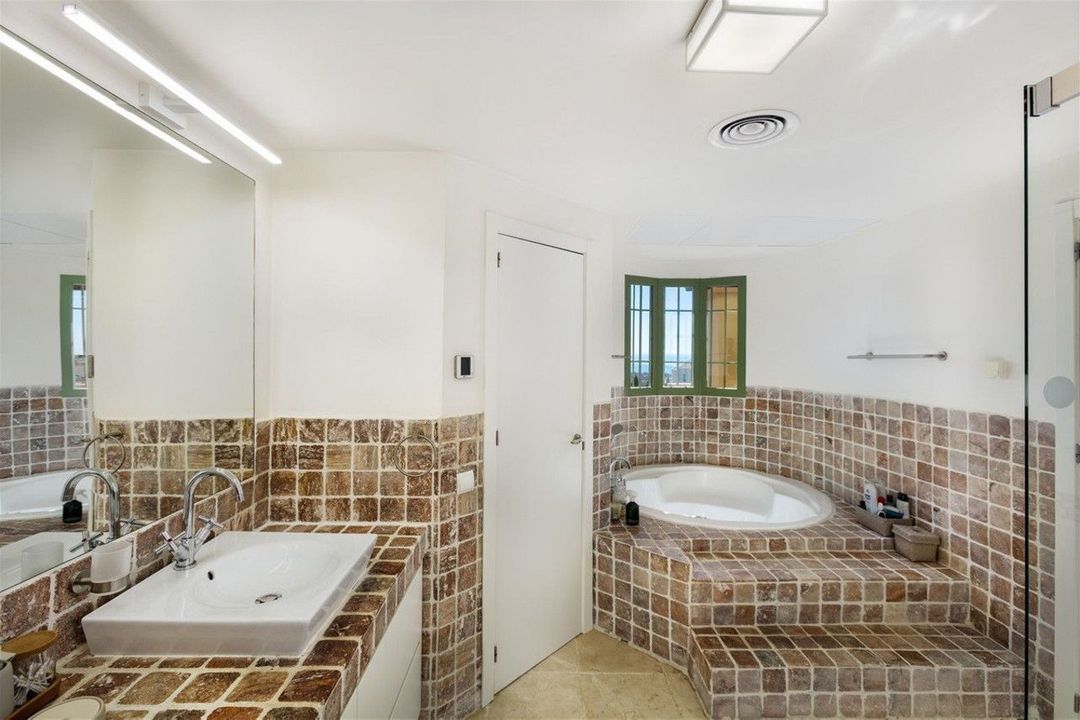 On the entrance level, you'll find a generous living area with a cozy fireplace opening onto the terrace enjoying sea views, a fully remodeled kitchen, separate laundry room, guest toilet, and two spacious guest bedrooms. Upstairs, the master suite boasts its own private terrace, accompanied by an additional guest bedroom currently used as a home office, as well as a private sauna. Multiple terraces with varying orientations invite natural light throughout the day and create the perfect spaces for outdoor living, whether in sun or shade.
