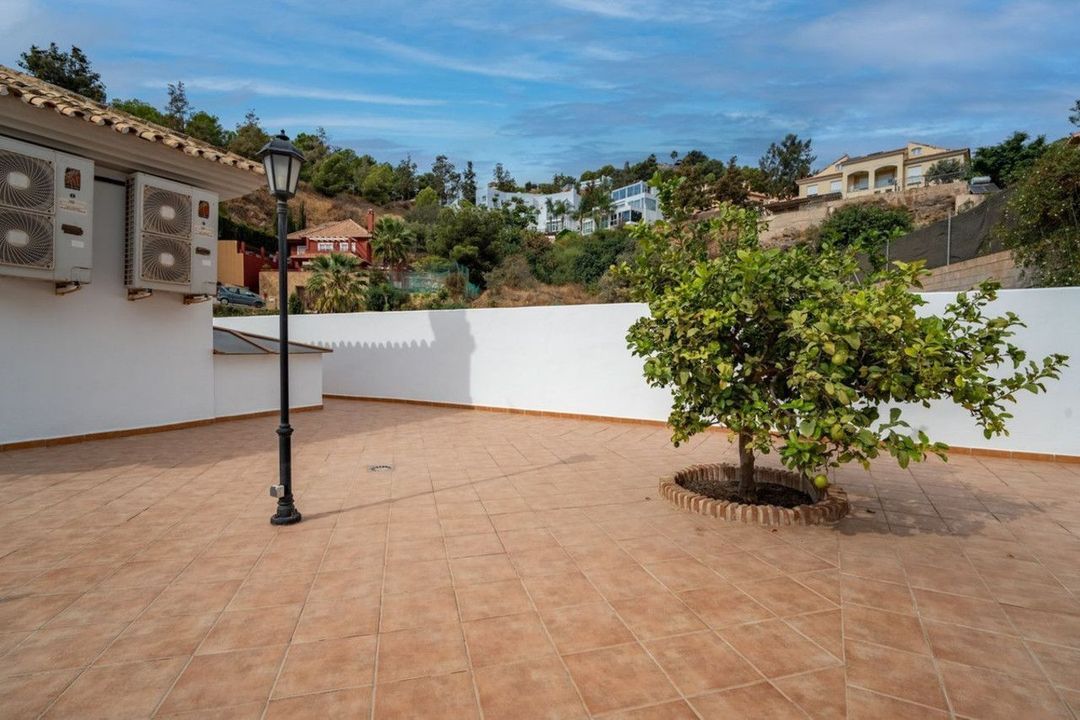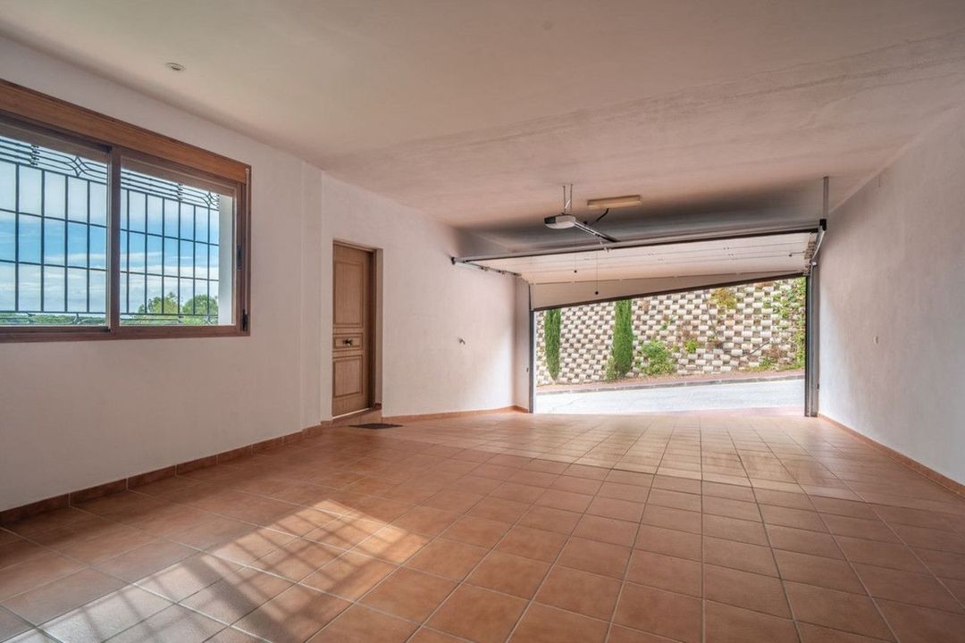 Outdoors, the garden surrounds the property with beautifully maintained green areas, a private swimming pool perfect for enjoying Málaga's climate, and a barbecue area ideal for family gatherings and social occasions. A garage with capacity for up to five cars adds exceptional value to this property.