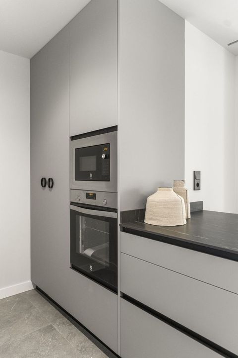 The property features three spacious bedrooms and three full bathrooms, ideal for families or those who value space and privacy. The contemporary design kitchen is seamlessly integrated with the living-dining area, creating a bright and welcoming atmosphere that extends to a charming terrace—perfect for enjoying Málaga's pleasant climate.
