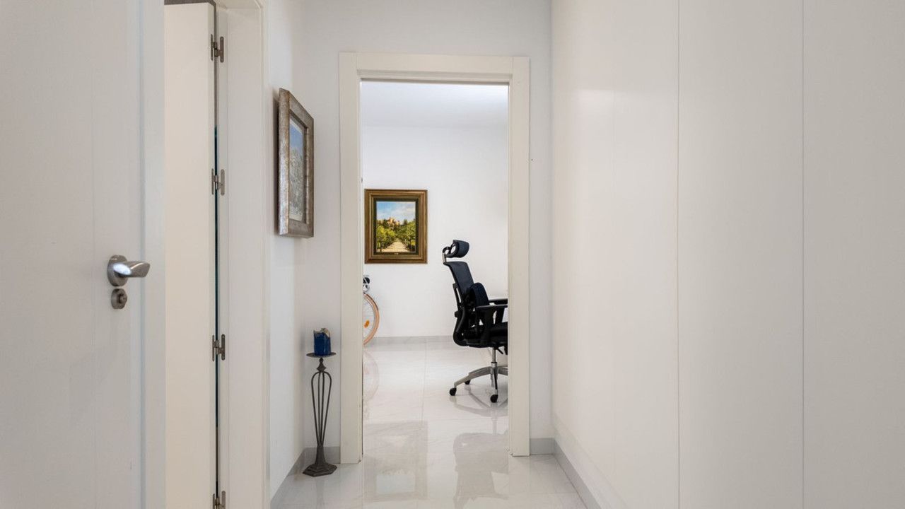 Upper floor: two bright bedrooms, both with open views, and two full bathrooms, one of them en-suite.