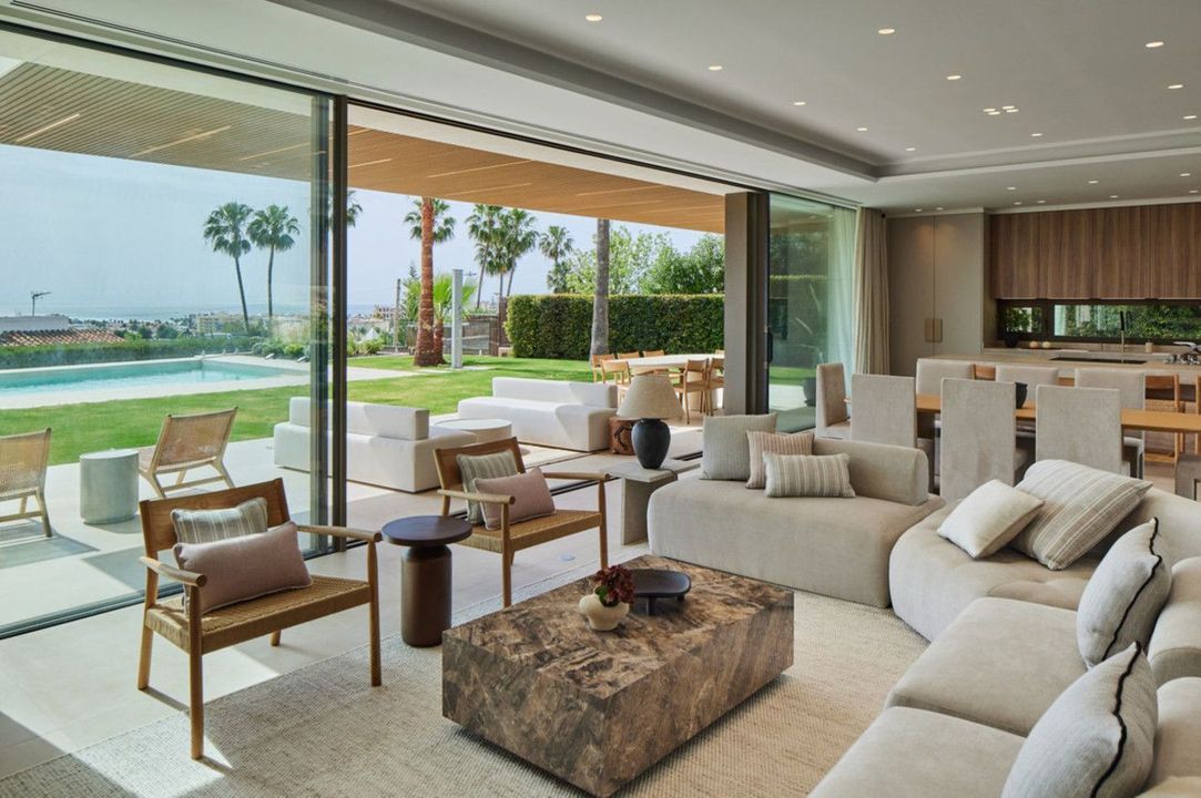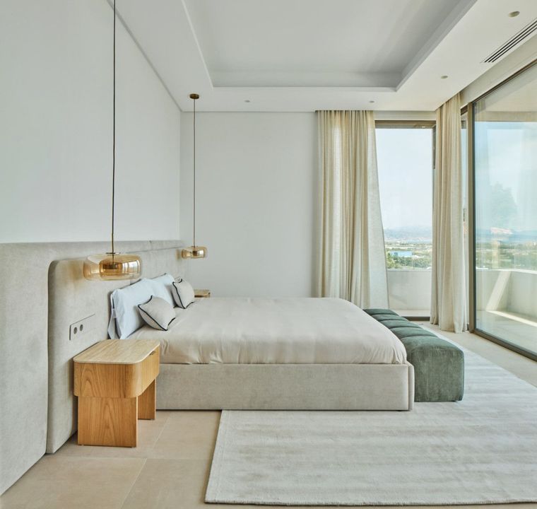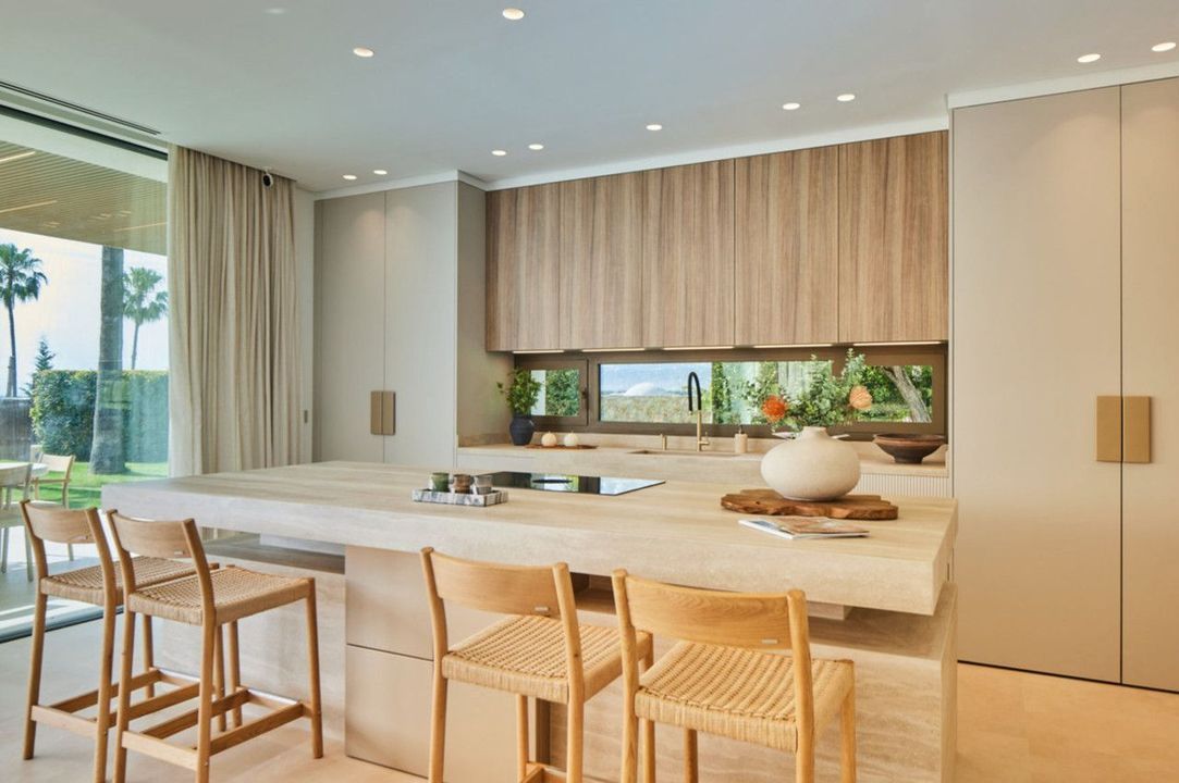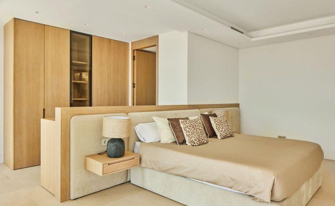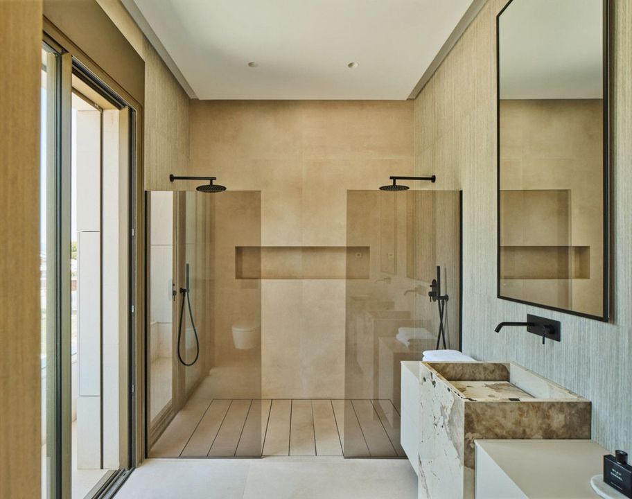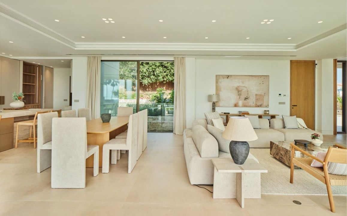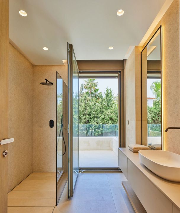 Casa Lux features five meticulously designed bedrooms, each with an en-suite bathroom to ensure privacy and comfort for every family member and guest. An additional guest toilet provides convenience during gatherings or day-to-day living. On the ground floor, the villa's contemporary kitchen seamlessly opens into an expansive living area, creating an ideal space for entertaining or family time. This level also includes a guest bedroom and direct access to the luxurious pool area, inviting indoor-outdoor living in true Mediterranean style.