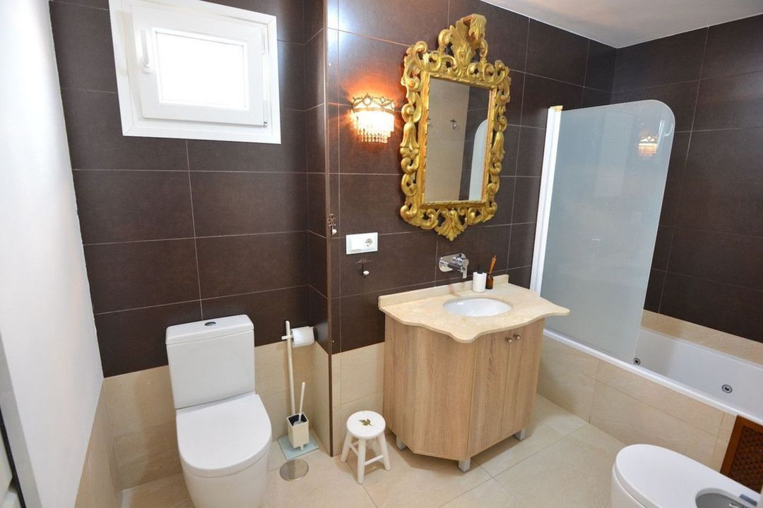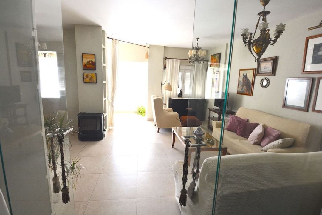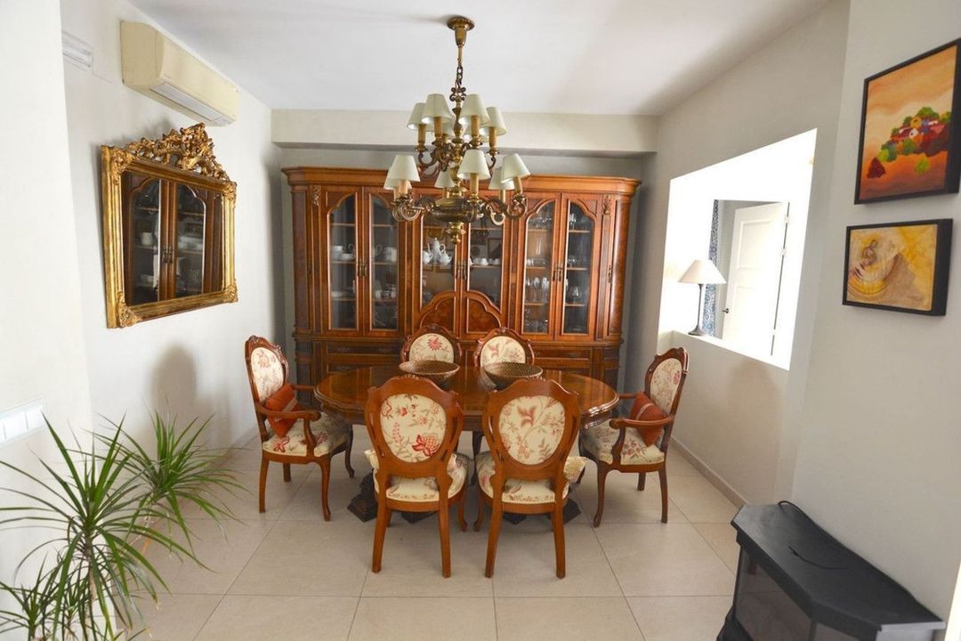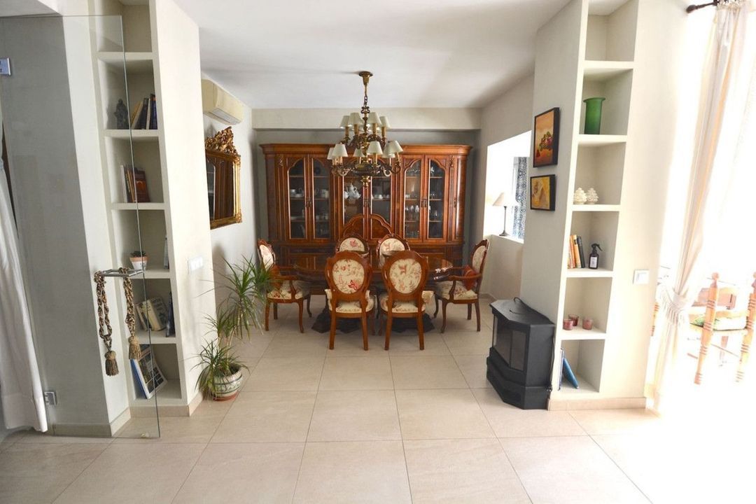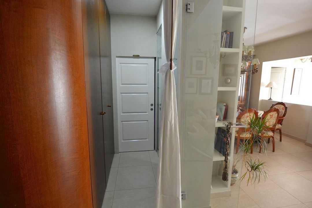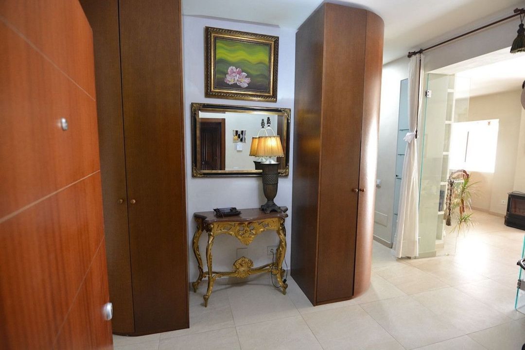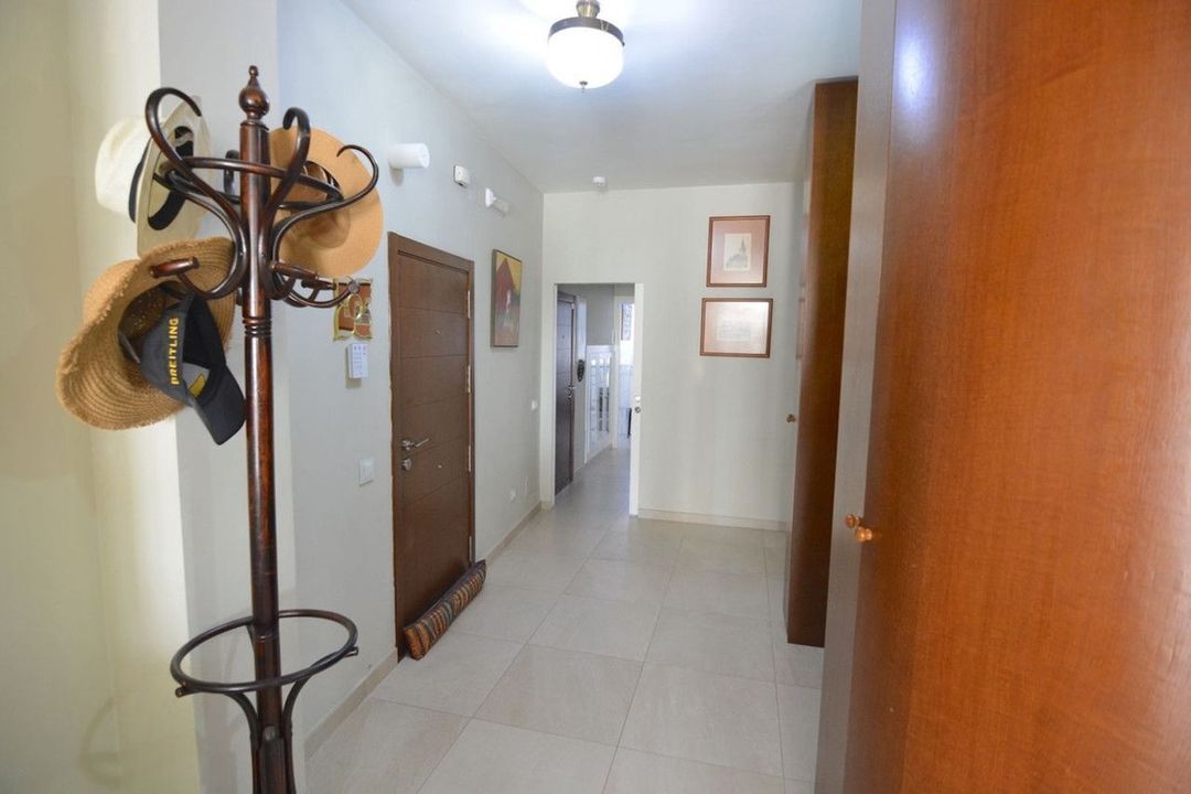 The kitchen is fully fitted and equipped with high-end appliances, complemented by a generous pantry and a separate laundry room. The property boasts cream-coloured porcelain stoneware flooring, integrated hot and cold air conditioning throughout, and two independent entrances: a main entrance and a service entrance.