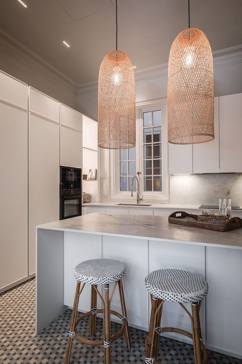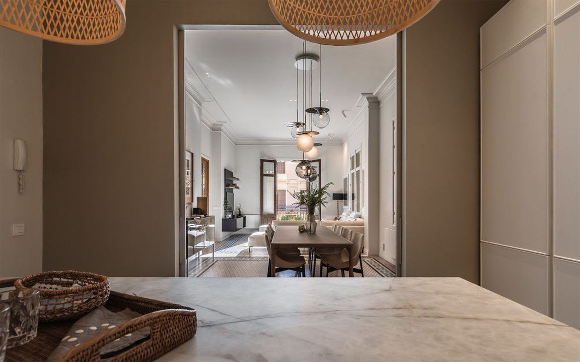 Deze indrukwekkende residentie combineert vakkundig de klassieke elegantie van de oorspronkelijke architectuur met een serene en lichtgevende eigentijdse inrichting. Hoge plafonds, originele vormen, en grote ramen harmoniseren met zuiver gelijnde meubels, edele materialen, en een zorgvuldig samengesteld selectie van verlichting armaturen, waardoor een sfeer die zowel verfijnd als natuurlijk is.