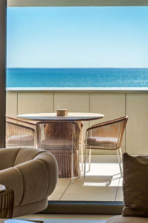 De ingang opent zich tot een gastvrije vestibule die leidt naar een lichte en ruime woon-eetkamer, naadloos verbonden met een moderne open keuken en een aparte wasruimte. Vanuit de leefruimte, grote ramen direct open op een royaal terras met een prachtig uitzicht op de zee, waardoor een ideale omgeving voor ontspannen, zonnebaden, of onderhoudend buiten.