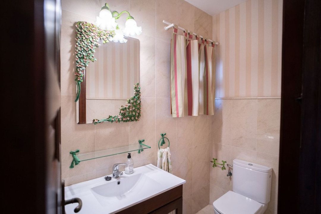 Upon entering, you are welcomed by a spacious entrance hall with a classic style that leads to the main floor. Here, an impressive living room with a fireplace connects to a private terrace offering views over the golf course, El Candado marina, and Málaga Bay. This floor, which includes two living areas and an incredible dining room, also features the master bedroom with balcony, walk-in closet, and en-suite bathroom, as well as a guest toilet and a large kitchen with a separate laundry area and two access points.