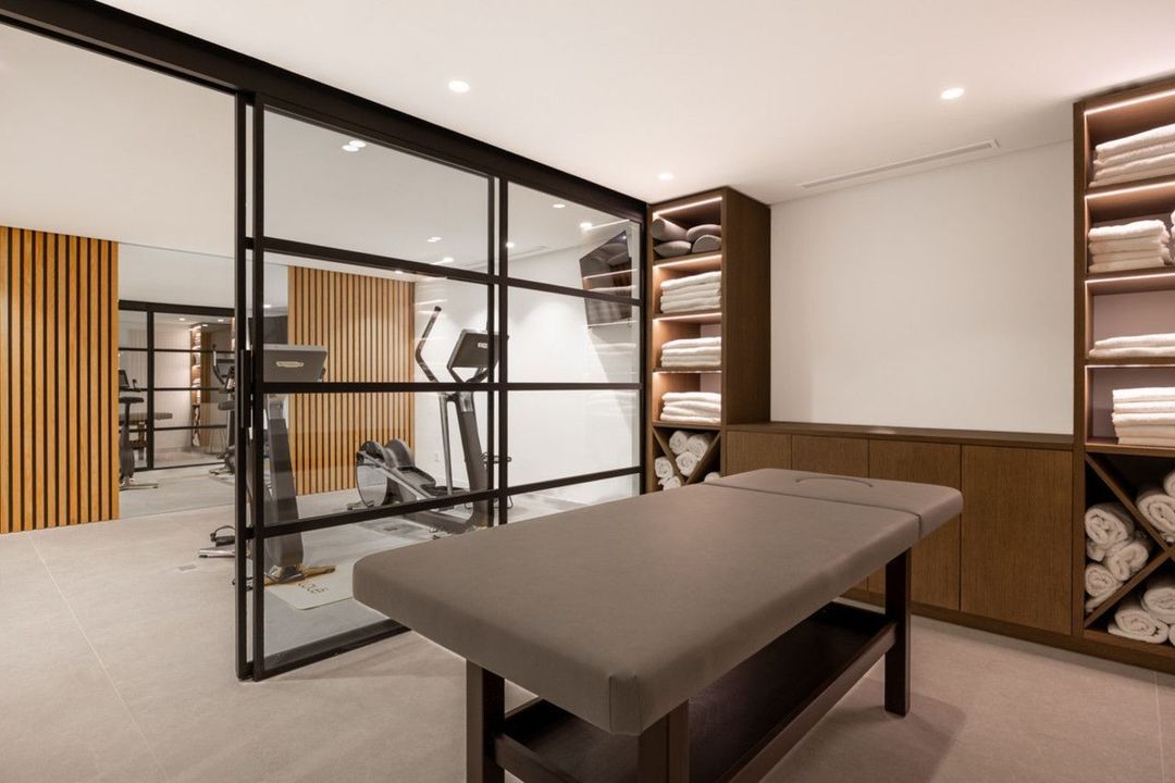 Designed as a private wellness and entertainment retreat, the villa features a fully equipped gym, a bespoke massage and spa room, and a versatile bar, cinema and playroom—ideal for both relaxation and social gatherings. The exterior is equally impressive. Beautifully landscaped gardens frame a heated infinity-style pool, sleek sun decks, and elegant chill-out areas, including a fire pit and chiminea. An exceptional outdoor kitchen with a premium Napoleon grill sets the scene for unforgettable al-fresco dining against a stunning sea backdrop.