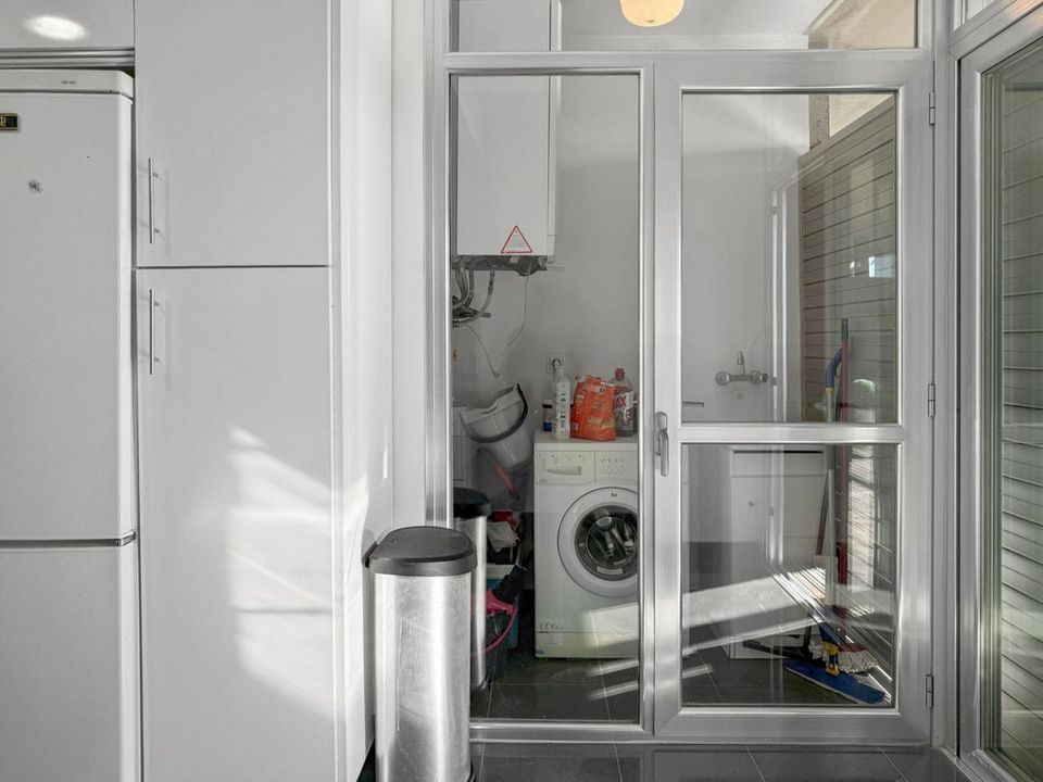 The fully independent kitchen is equipped with Bosch appliances and includes a separate utility/laundry room.