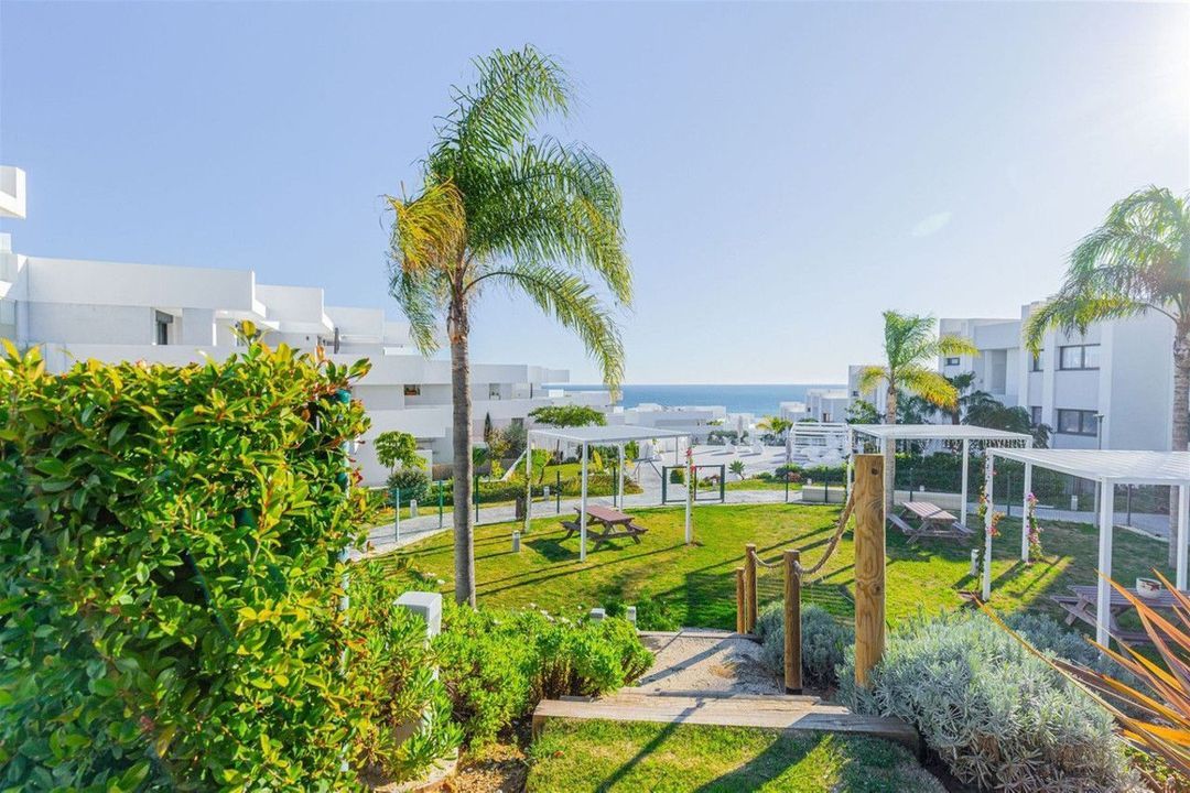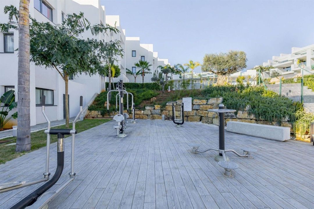 Communal facilities include saltwater pools for adults and children, landscaped gardens, picnic areas, playgrounds, chill-out spaces, a fitness area, yoga and relaxation zones, solarium, leisure room, and secure access—perfect for a balanced Mediterranean lifestyle.