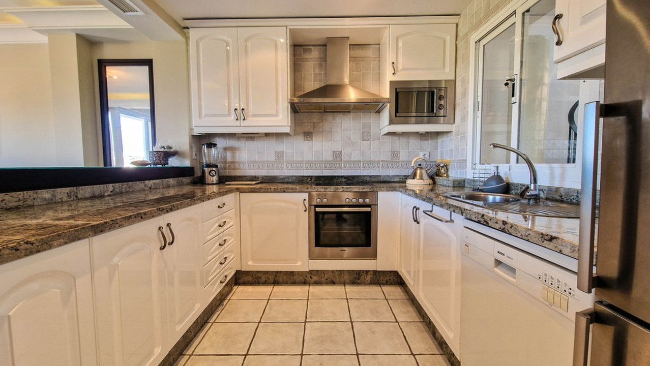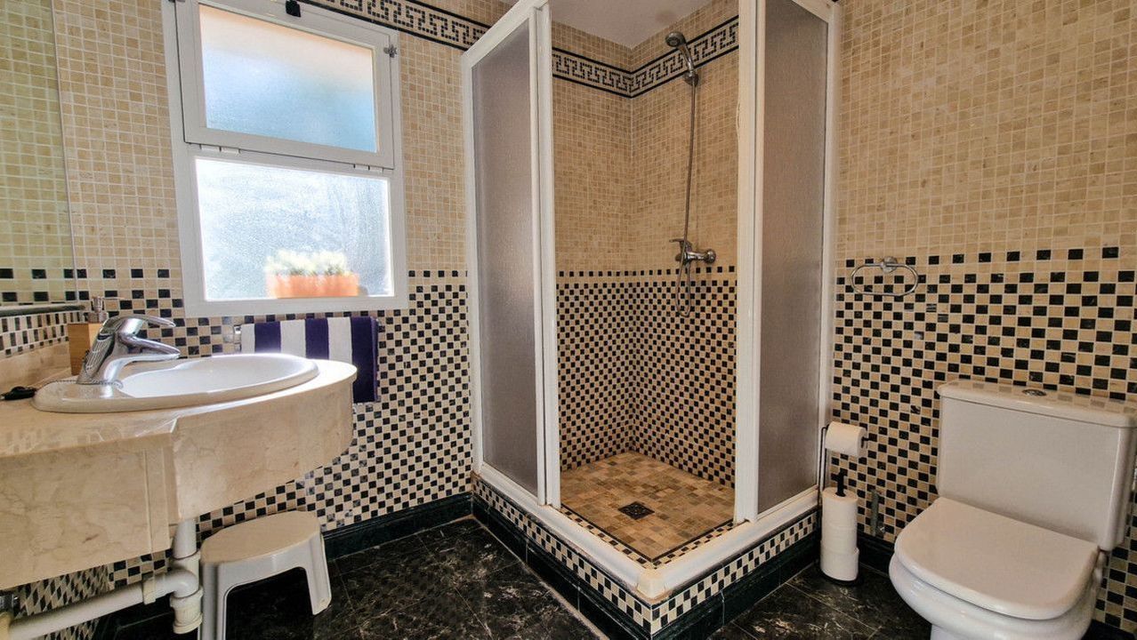 The open-plan living area flows effortlessly onto a private terrace, where panoramic views stretch across the landscape and beyond. An impressive solarium provides additional outdoor space — ideal for entertaining or unwinding — complete with an outdoor kitchen and jacuzzi for enjoying the warm Spanish evenings in total privacy. in addition you get to enjoy communal swimmingpools in plural and lush, wellkept gardens, throughout the urbanisation.