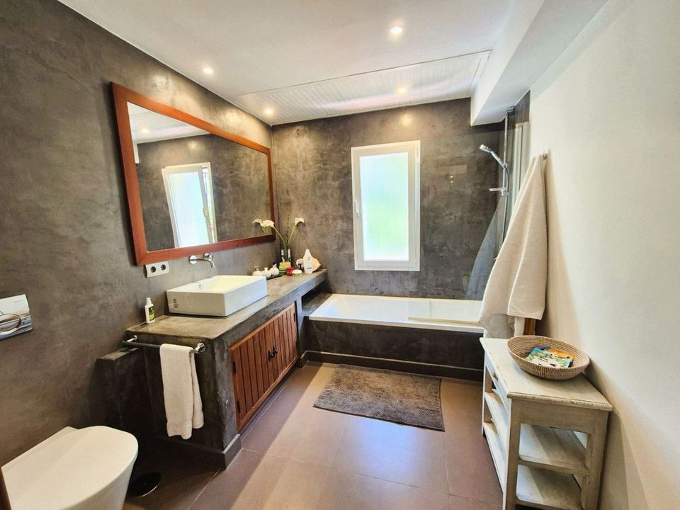 On the lower ground floor, you'll find four additional bedrooms and a second living room, which can easily be converted into a sixth bedroom. From here, step out onto another terrace that leads to the spacious pool area and garden, designed for pure relaxation with various lounge zones, a pergola, a pool bar, and an outdoor dining area — perfect for entertaining.