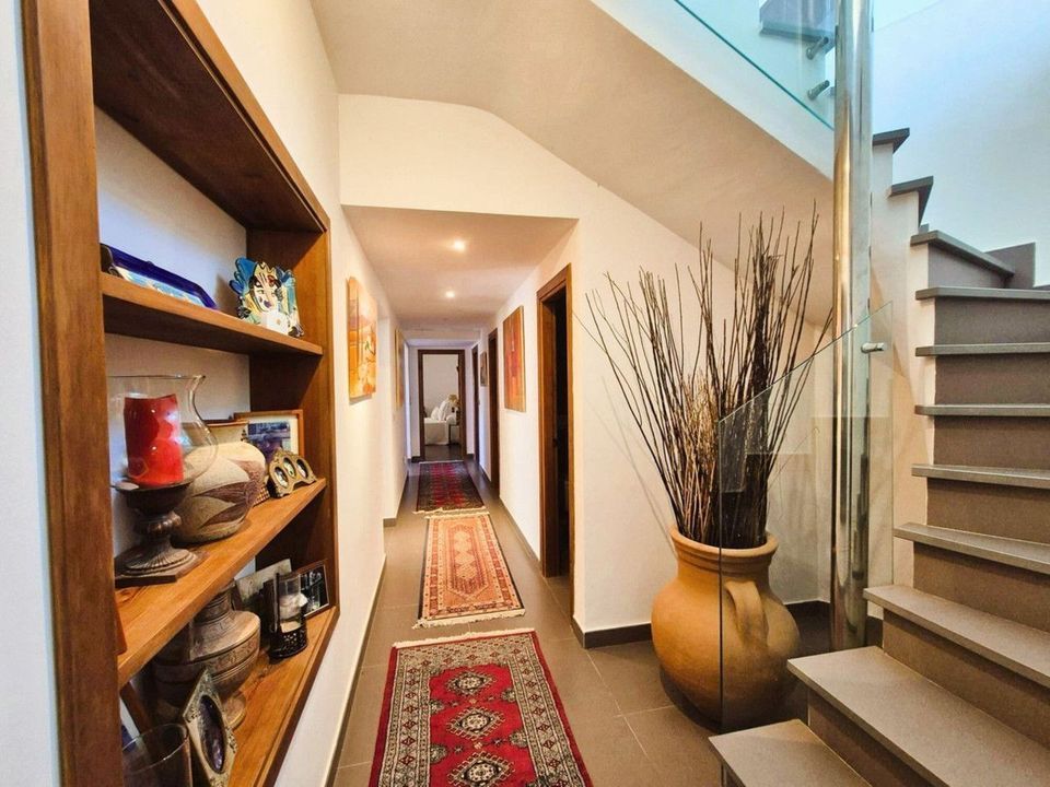 As you step inside, you're welcomed by a spacious entrance hall where the beautiful Mediterranean views immediately capture your attention. You'll find a fully equipped kitchen with a separate laundry room, a spacious living room with fireplace, and a dining room that connects directly to a covered terrace ideal for indoor-outdoor living. There's also a guest toilet and another covered terrace accessible from several rooms.
