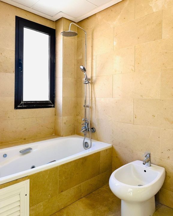 Het appartement heeft drie ruime slaapkamers, waaronder een elegante master suite met aangrenzende badkamer, en een tweede moderne badkamer. De grote, lichte woonkamer heeft een nieuwe, volledig uitgeruste open keuken, die liefhebbers van gezelligheid en gastronomie zal bekoren. Een functionele bijkeuken maakt de inrichting van deze leefruimte compleet.