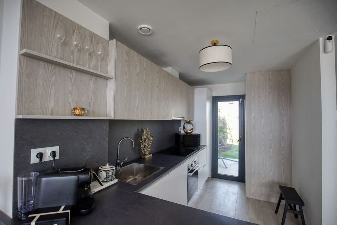Inside, the bright open-plan living area connects effortlessly with the outdoor zones through floor-to-ceiling sliding doors, creating a seamless indoor-outdoor flow. The fully equipped kitchen, stylish bathrooms, and quality finishes throughout reflect a refined yet relaxed lifestyle.