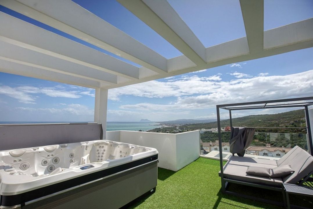 A true highlight is the private rooftop terrace, where you'll find a luxurious jacuzzi and a large sunbed—ideal for enjoying sunset views, starlit evenings, or relaxed afternoons with complete privacy.