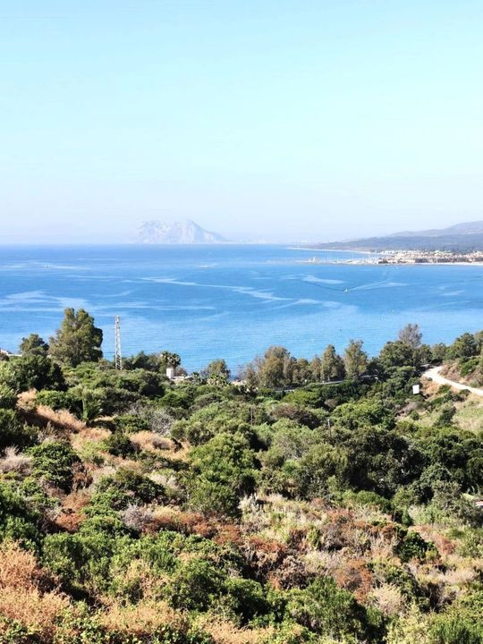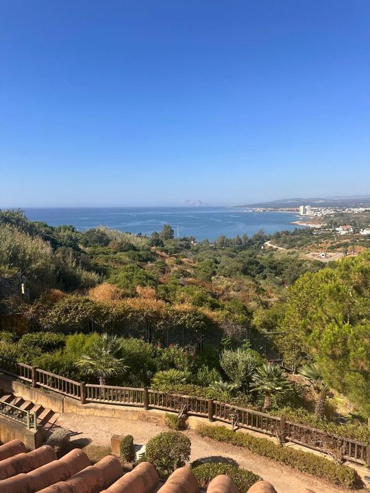 Ground floor: Modern open-plan kitchen and living room, bedroom with en-suite bathroom, and access to a large terrace with panoramic views of the Mediterranean and Gibraltar.