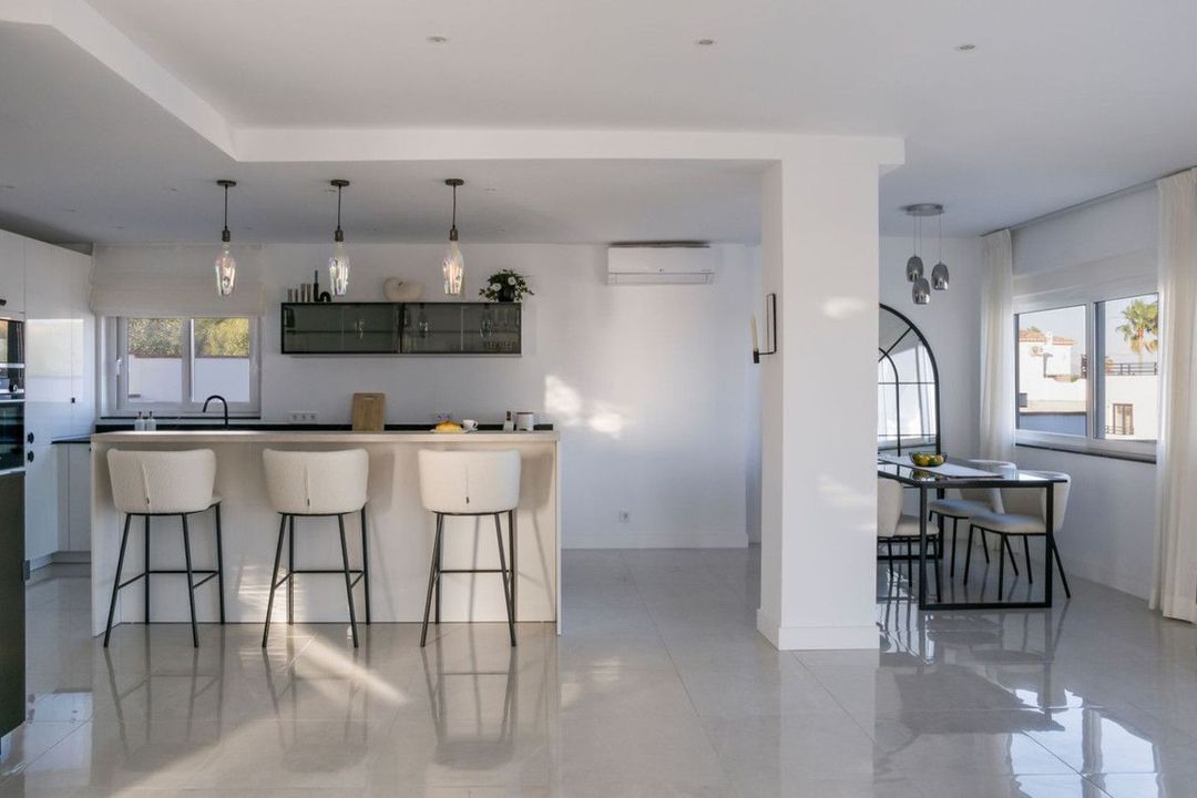 The villa has been tastefully updated throughout with new electrics, floors, doors, windows, shower rooms, hot and cold A/C. and completed to a high standard.