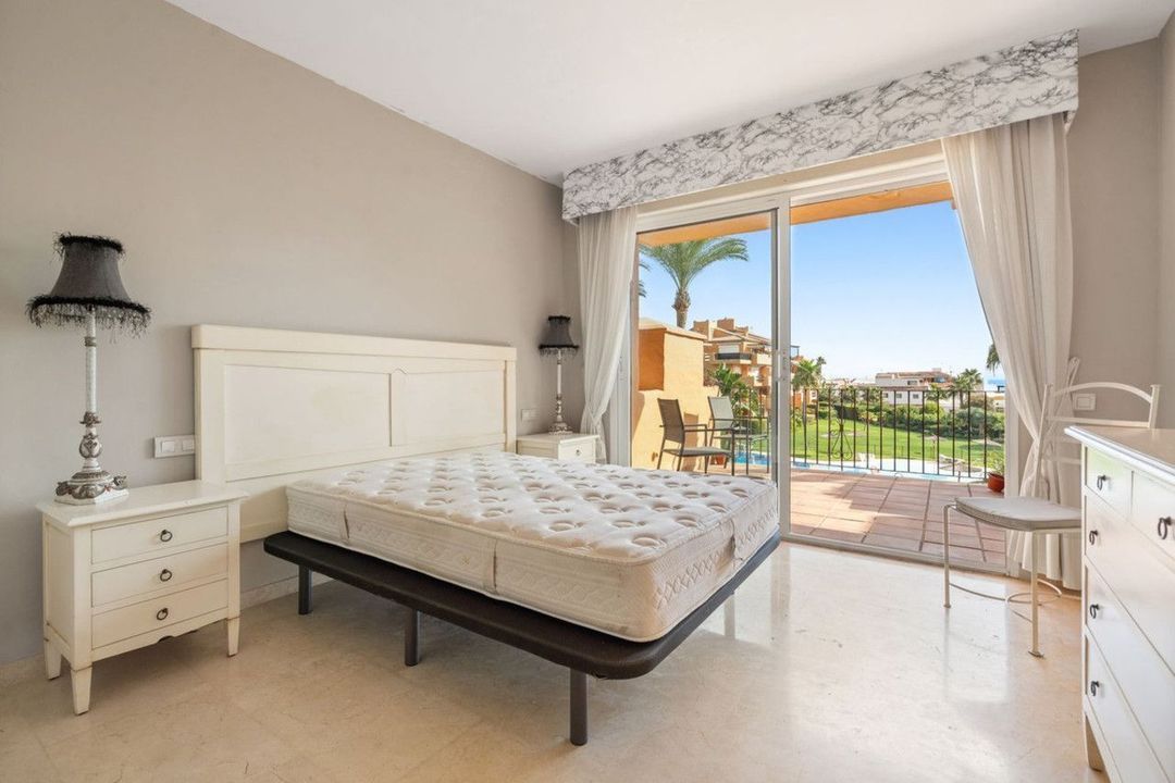 Fantastic first-floor apartment in one of Manilva's most exclusive beachfront complexes, Los Granados de Duquesa. It offers three spacious bedrooms and two bathrooms. The master bedroom has an en-suite bathroom and direct access to a terrace with sea views, while the second bedroom enjoys another southwest-facing terrace that brings plenty of natural light. The property also features direct access to the beach and promenade, 24-hour security with video intercom and CCTV, as well as individual air conditioning in every room. The community offers a swimming pool and tropical gardens, and the apartment includes a private underground parking space. Just a short walk from La Duquesa marina, this is a unique opportunity to enjoy the Mediterranean lifestyle in an unbeatable location.