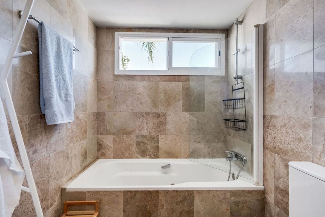 On the ground floor, you will find a fully renovated open-plan kitchen, spacious and modern, seamlessly connected to the living–dining area. From here, you can access a large rear terrace, perfect for outdoor dining, as well as a guest toilet. At the front of the house, there is a peaceful patio furnished with outdoor sofas—an ideal spot to relax.