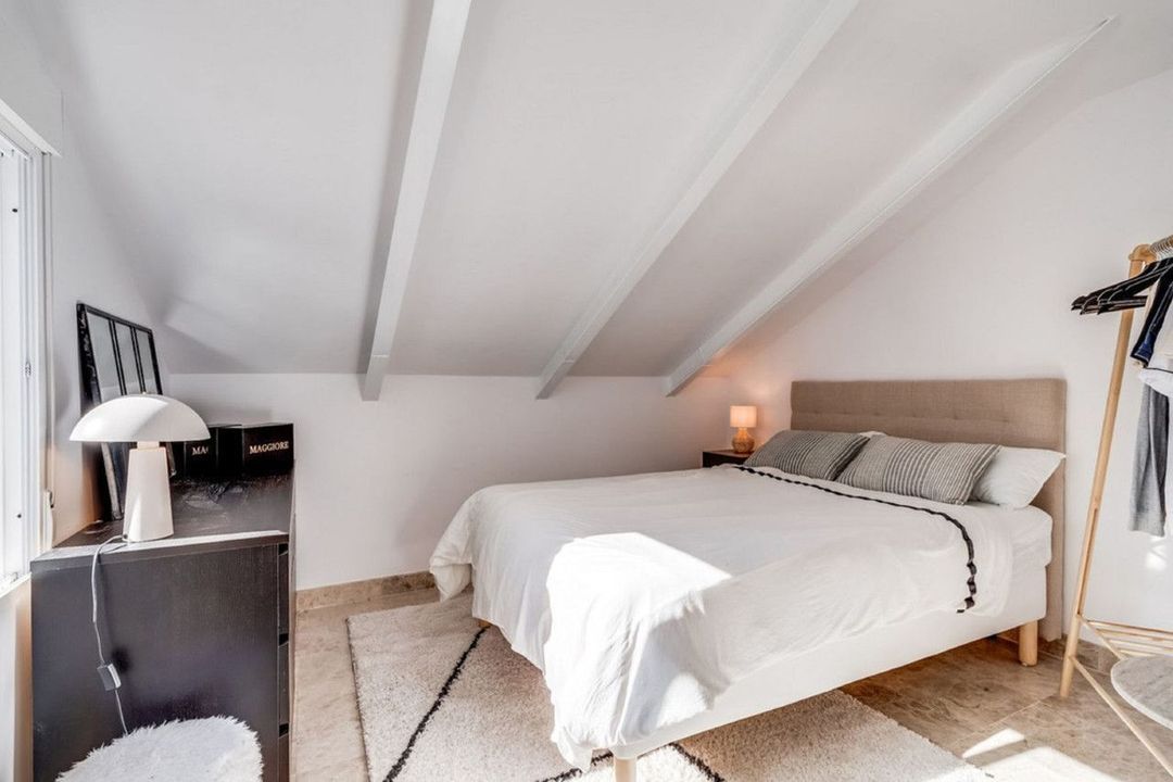The top floor offers a charming attic-style bedroom along with a spacious terrace, providing a versatile area flooded with natural light.