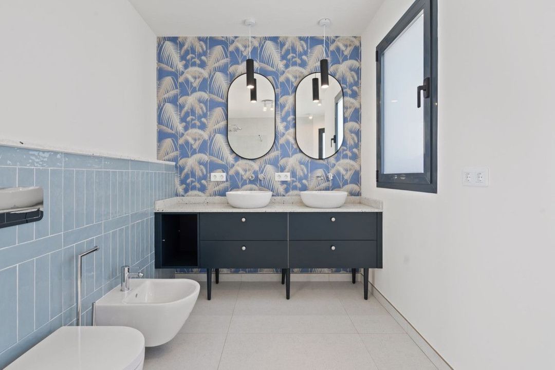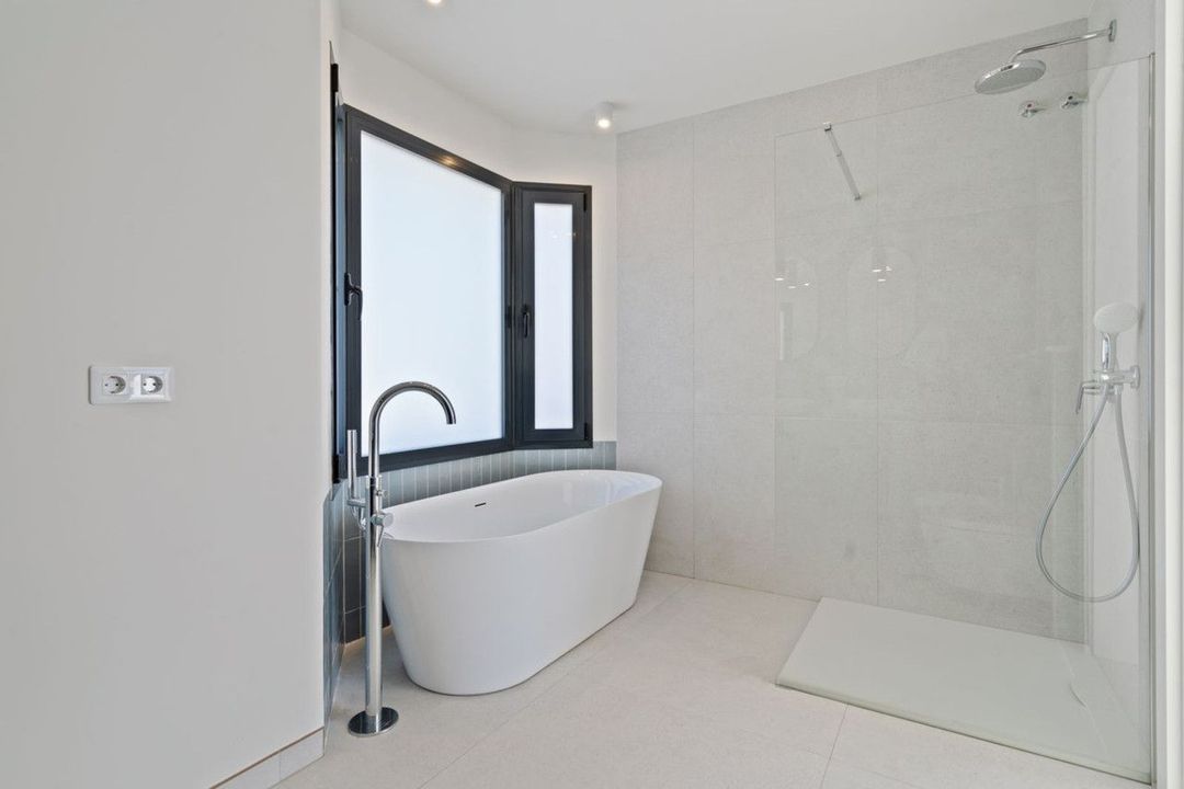 Designed with both style and functionality in mind, the villa is distributed over two levels. The lower floor features three spacious bedrooms and two and a half bathrooms, providing ample accommodation for family and guests. On the upper level, the impressive master suite offers a private retreat, complete with its own en-suite bathroom and a generous walk-in wardrobe.