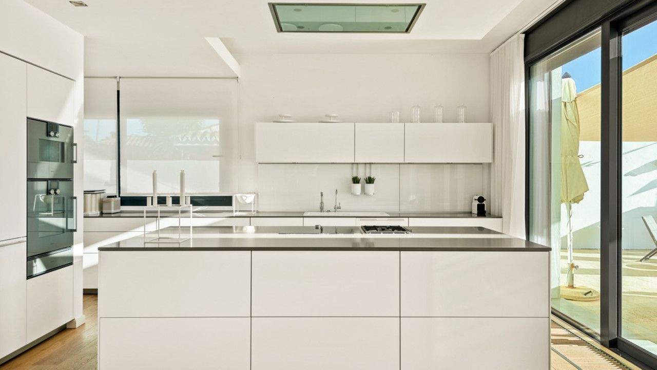 Prachtige moderne villa direct aan het strand met 6 slaapkamers en 4 badkamers, gelegen eerste lijn aan het strand in Costabella, Marbella Oost en op maar 10 minuten rijden van het centrum van Marbella en Puerto Banus.