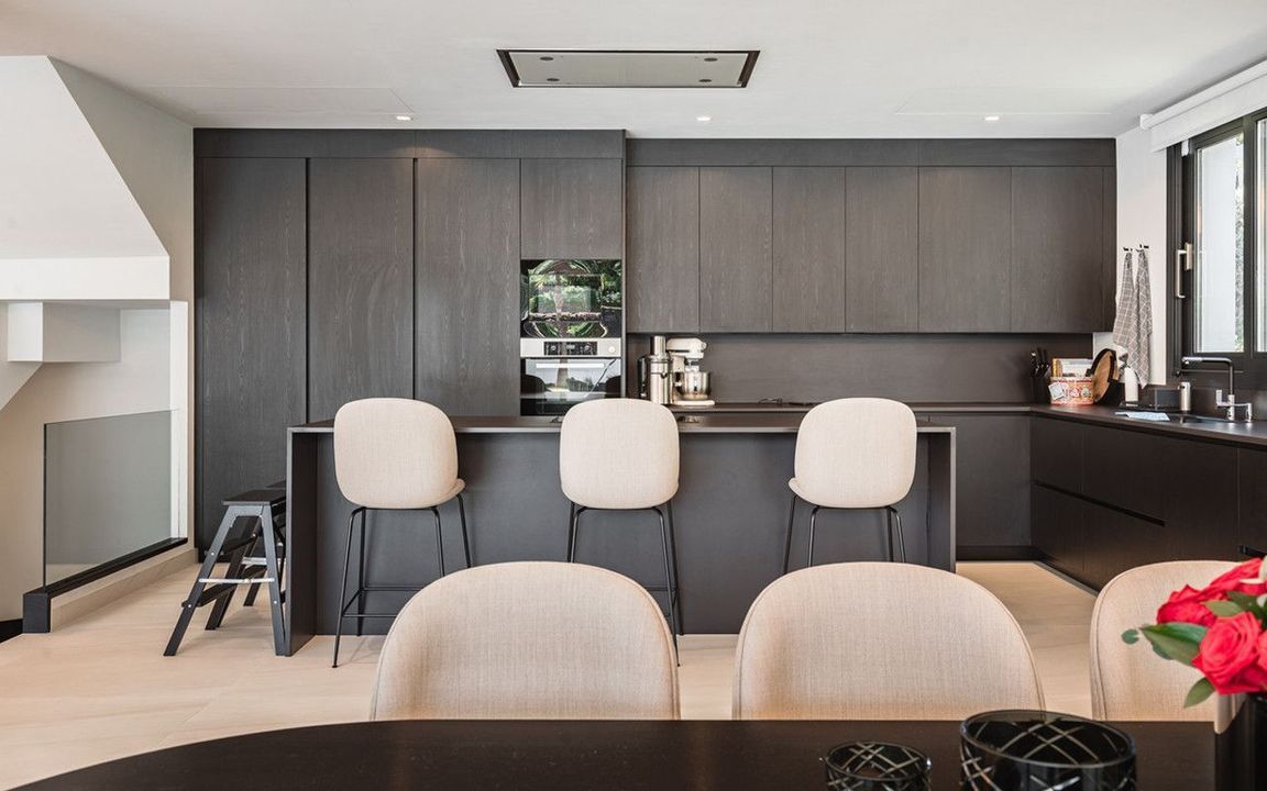 Verspreid over drie verdiepingen omvat de villa op de begane grond: een ruime woonkamer met meerdere zithoeken; een open volledig uitgeruste keuken/eetkamer voorzien van topapparatuur, een centraal eiland en een wijnkoeler; een gastenslaapkamer met eigen badkamer; toegang tot de veranda's, terrassen, het zwembad en de zorgvuldig aangelegde tuin met volgroeide planten die privacy creëren ten opzichte van naburige woningen.
