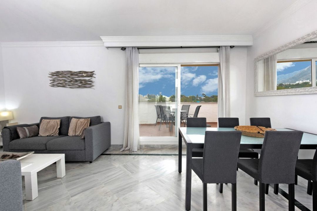 Welcome to this beautifully presented 2-bedroom, 2-bathroom penthouse located in the sought-after community of La Dama de Noche, just a short walk—1,000 meters—from the beach and the vibrant heart of Puerto Banús