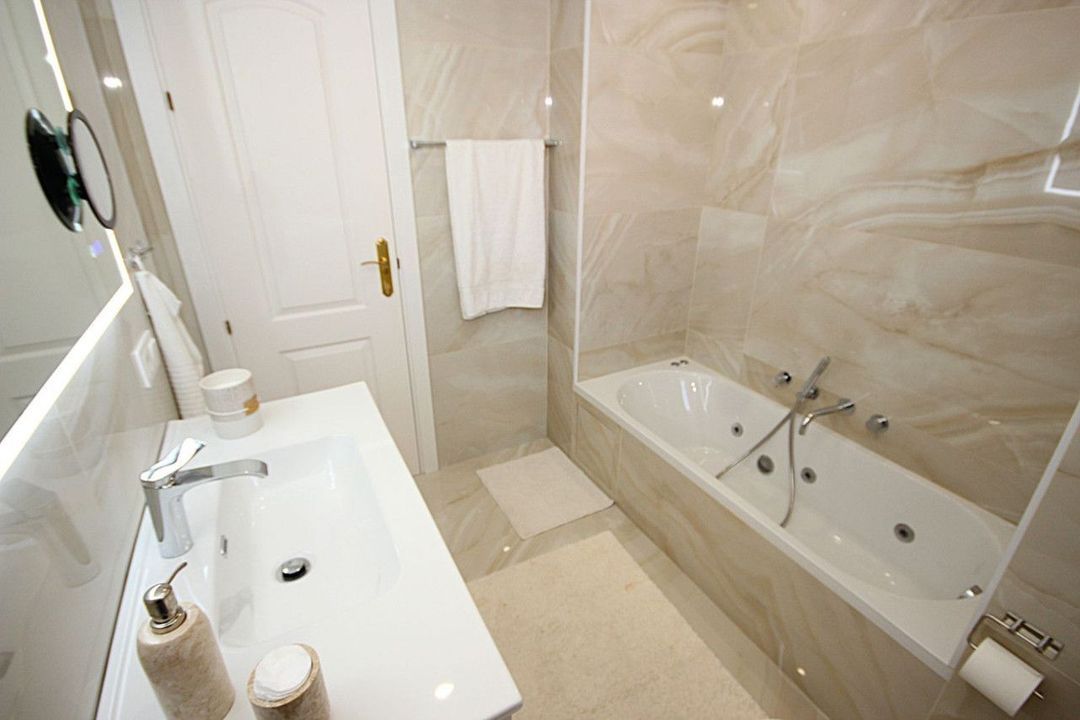 Lower level: Bright living area, with access to the lower terrace with beautiful open views to the mountains and the urbanisation, open new kitchen, 2 bedrooms and 2 bathrooms one of them ensuite.