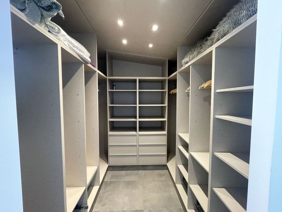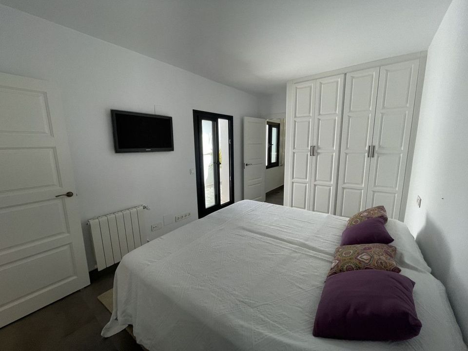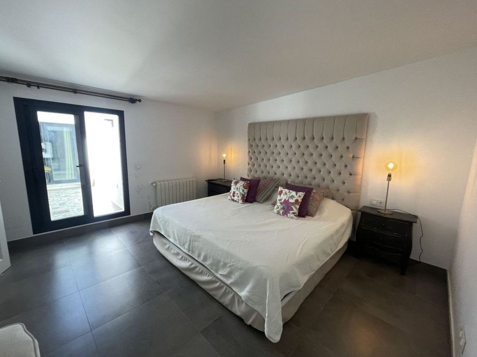 The villa has three bedrooms, each with an en-suite bathroom, arranged around a charming interior patio that provides a touch of serenity and privacy. It also has a laundry area and built-in wardrobes that add functionality to the space.