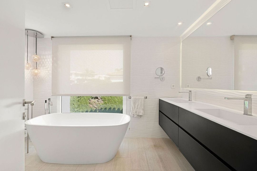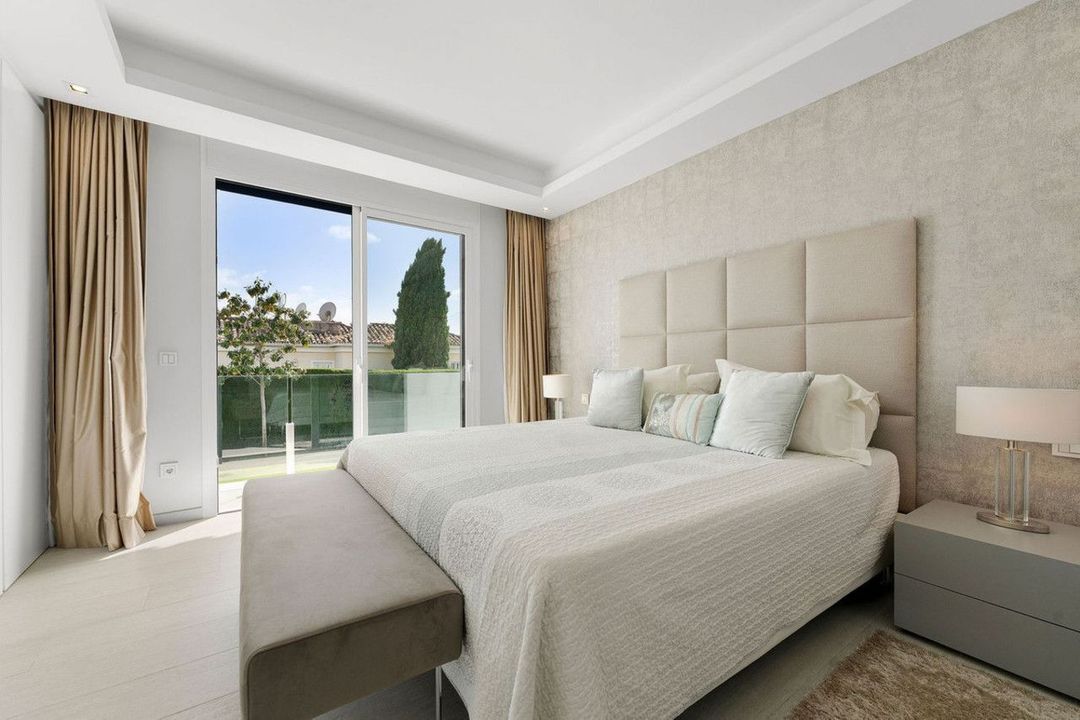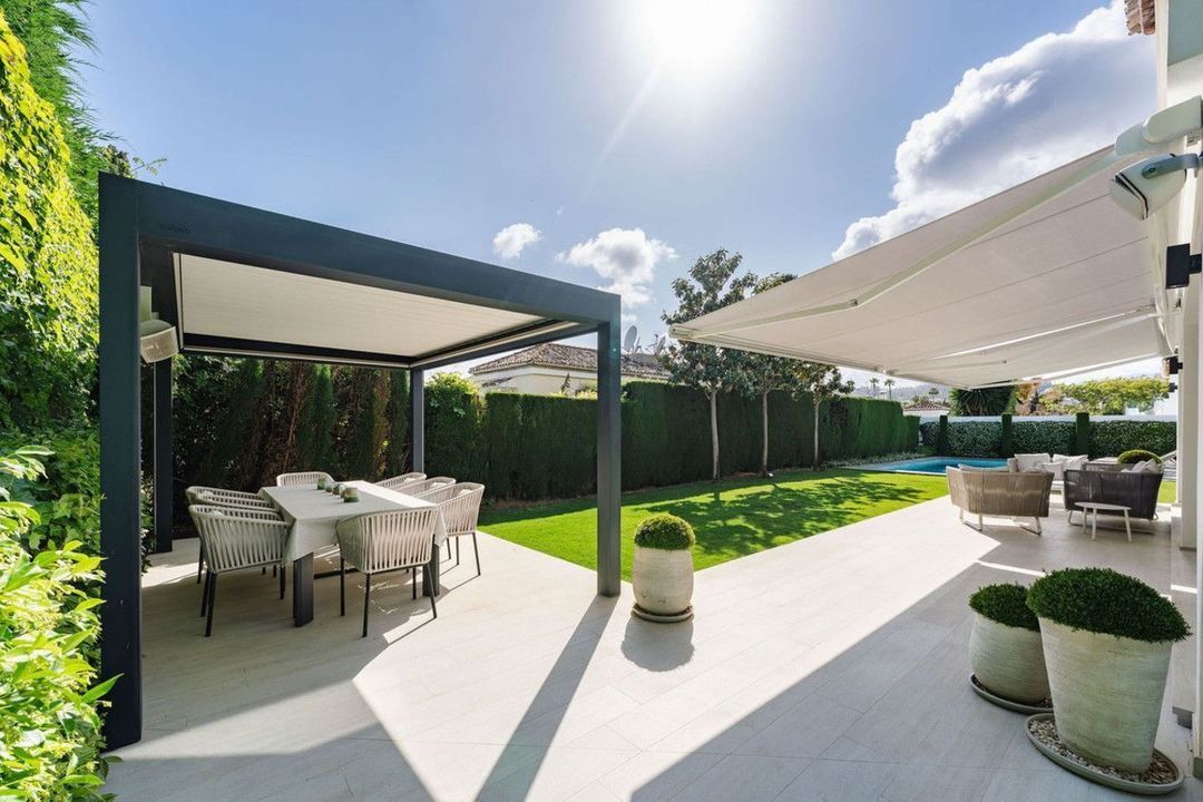 Welcome to this great fully refurbished family villa in the Golf Valley. As you enter the living, dining and open plan kitchen you are greeted with an abundance of light and space. From here you have direct access to the beautifully manicured gardens, gazebo, heated pool and open terraces with shaded large sails for extra comfort. The house is well thought out creating private space on the master level and then you have 2 wings ideal for guest. There are 5 bedrooms and 4 bathroms, 3 of which are onsuite. On the living room level you have a laundry area and a guest toilet near by. The house was completely refurbished 6 years ago using natural colors to create a homely feeling. The house is complete with underfloor heating throughout, airzone ac systems both powered by an aerothermic system. This house is also ideal as a rental property due to its 5 bedrooms and distribution.