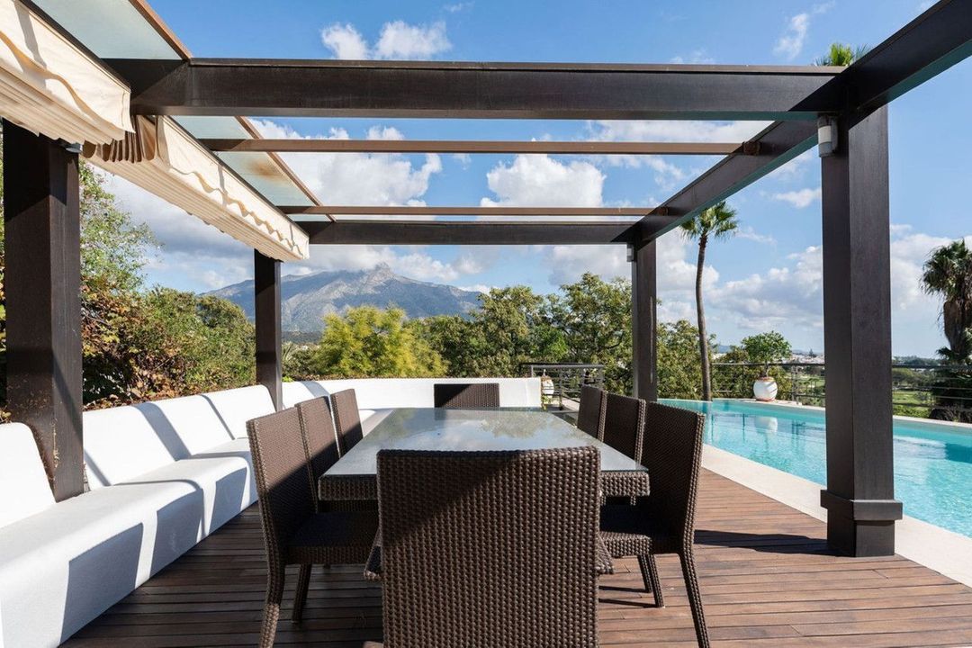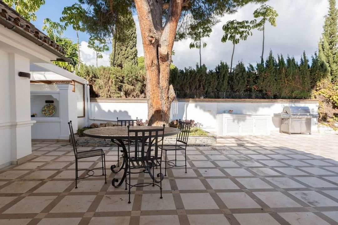 Rare opportunity to aquire a classic villa in perfect condition frontline to Royal Las Brisas Golf. As you enter you immediately feel that the house was built to very high standards where details and personal touches can be seen throughout. The main floor comprises of the open plan kitchen, dining area and livingroom all with access to the terrace area where you have amazing views over the 15 meter long heated infinity pool towards La Concha. On the same floor you have 2 bedrooms ( orginally 3), 2 bathrooms and a guest toilet. The first floor occupies the Master Suite with a beautiful private terrace enjoying the grand views. There is also direct access from the property onto Las Brisas Golf. The house has a large garage and carport . In he basement area you have a custom built bodega with room for hundreds of bottles, a laundry room and a storage which could be turned into a games room etc. This is a special property in a priviliged location that has to be seen to be fully appreciated **PLEASE NOT THAT THIS WAS ORIGINALLY A 4 BEDROOM HOUSE AND CAN EASILY BE CONVERTED BACK**