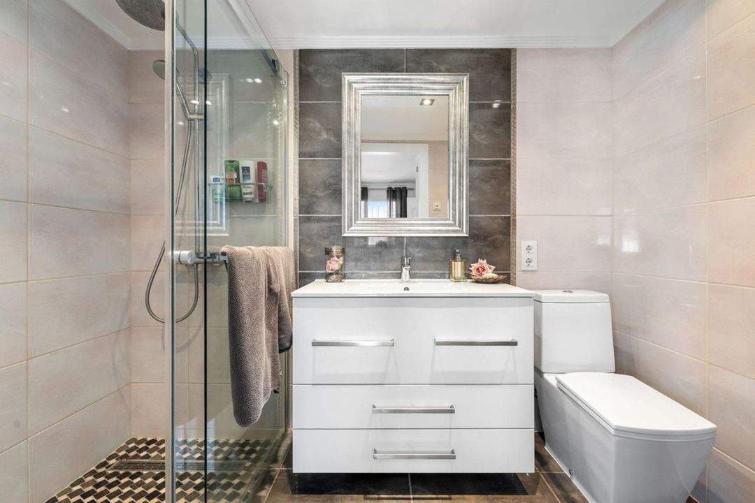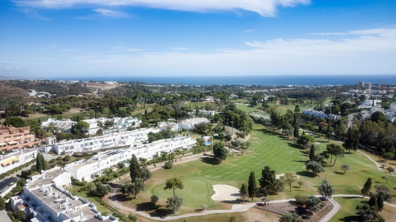 We present this special & classic property in the well known development of Los Jarales. Nestled in the heart of Aloha with views towards the Aloha golf course and across the valley. The spacious entrance takes you to the property through the large patio where you can enjoy the morning sun and its a perfect place for the warm summer evenings. The spacious living room has direct access to the west facing terrace with beautiful open views, here there is also the large kitchen and laundry area , the spacious master suite and a guest toilet. On the lower floor you have 2 large ensuite bedrooms. The property comes with a private look up garage which is easy accesable from the house. The property has been well maintained by the current owners and is ready to move into. Please note that the m2 built are bigger than advertised. A true gem in a popular urbanisation.