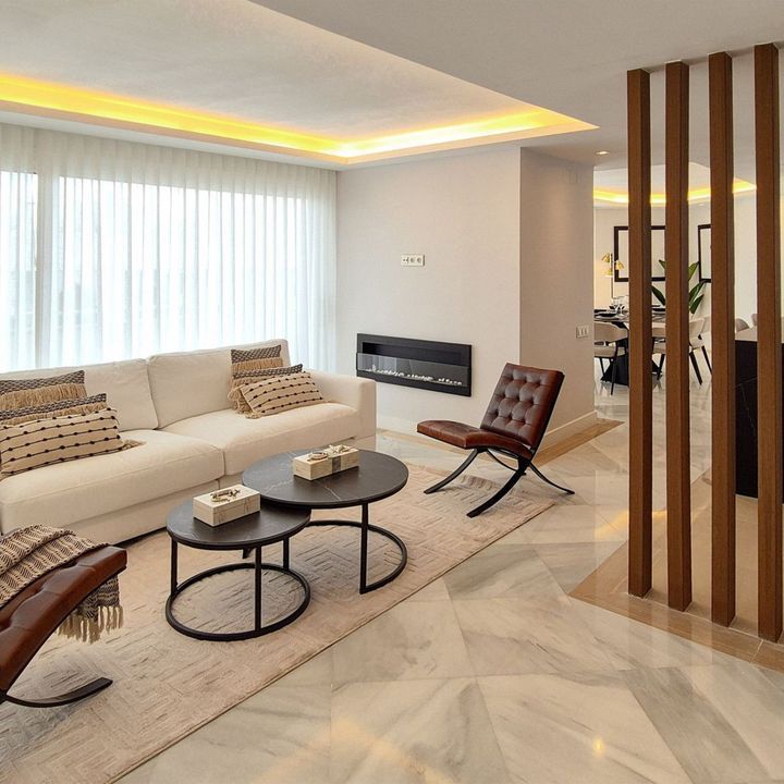 We present a unique opportunity to acquire a newly renovated, brand-new duplex penthouse in the luxurious Cipreses del Mar ( Náyade building ) development, located in the heart of Marbella's Golden Mile and the second line from the sea, offering magnificent and open views of the sea and mountains.