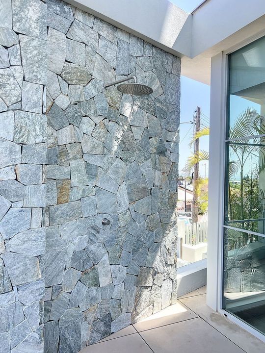De combinatie van de open keuken en het woongedeelte met de grote schuiframen die uitkijken op de plunge pool zorgt voor een fijne lichte sfeer. Een gezellige en toch zeer luchtige leefruimte.