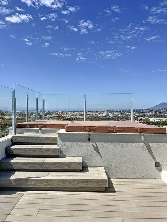 Het solarium op het dak biedt het meest prachtige uitzicht op de zee rondom, Gibraltar en La Concha. Op deze verborgen parel kan je het hele jaar door zonnen of een duik nemen in de grote zoutwaterjacuzzi.