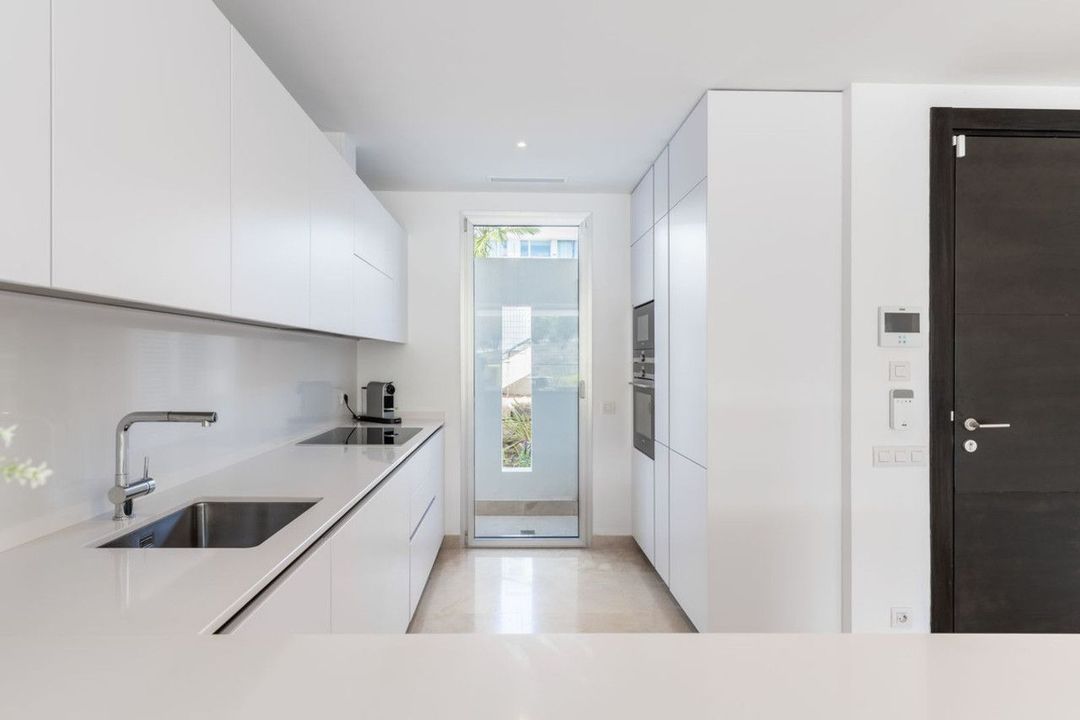 The property is distributed over 4 floors and comprises on the main floor a bright and spacious living room, open plan modern kitchen with top of the line appliances, a separate utility room and a southwest facing terrace overlooking a park with olive trees, which gives tranquility and privacy.